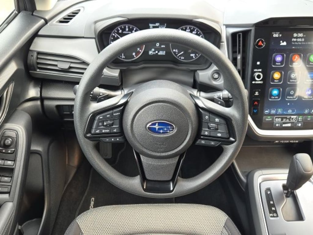 3.90 Axle Ratio, 4-Wheel Disc Brakes, 6 Speakers, ABS brakes, Air Conditioning, Alloy wheels, AM/FM radio: SiriusXM, Anti-whiplash front head restraints, Auto High-beam Headlights, Automatic temperature control, Brake assist, Bumpers: body-color, Driver door bin, Driver vanity mirror, Dual front impact airbags, Dual front side impact airbags, Electronic Stability Control, Emergency communication system: STARLINK Safety and Security (Subscription Required), Exterior Parking Camera Rear, Four wheel independent suspension, Front anti-roll bar, Front Bucket Seats, Front Center Armrest, Front dual zone A/C, Front fog lights, Front reading lights, Fully automatic headlights, Illuminated entry, Knee airbag, Low tire pressure warning, Occupant sensing airbag, Outside temperature display, Overhead airbag, Overhead console, Panic alarm, Passenger door bin, Passenger vanity mirror, Power door mirrors, Power steering, Power windows, Premium Cloth Upholstery, Radio data system, Radio: Subaru STARLINK 11.6" Multimedia Plus Sys, Rear anti-roll bar, Rear seat center armrest, Rear window defroster, Rear window wiper, Remote keyless entry, Security system, Speed control, Speed-sensing steering, Split folding rear seat, Spoiler, STARLINK/Apple CarPlay/Android Auto, Steering wheel mounted audio controls, Tachometer, Telescoping steering wheel, Tilt steering wheel, Traction control, Trip computer, Turn signal indicator mirrors, Variably intermittent wipers, Wheels: 17" x 7.0J Dark Gray Aluminum Alloy. 2024 Subaru Crosstrek Premium Gray Metallic AWD 2.0L 4-Cylinder DOHC 16V Lineartronic CVT