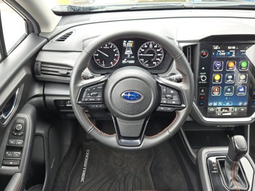3.70 Axle Ratio, 4-Wheel Disc Brakes, 6 Speakers, ABS brakes, Air Conditioning, All-Weather Floor Liners, Alloy wheels, AM/FM radio: SiriusXM, Anti-whiplash front head restraints, Auto High-beam Headlights, Auto-Dimming Exterior Mirror w/Approach Light, Auto-Dimming Mirror w/Compass & HomeLink, Automatic temperature control, Brake assist, Bumpers: body-color, Driver door bin, Driver vanity mirror, Dual front impact airbags, Dual front side impact airbags, Electronic Stability Control, Emergency communication system: STARLINK Safety and Security (Subscription Required), Exterior Parking Camera Rear, Four wheel independent suspension, Front anti-roll bar, Front Bucket Seats, Front Center Armrest, Front dual zone A/C, Front fog lights, Front reading lights, Fully automatic headlights, harman/kardon Audio & Power Moonroof, harman/kardon Surround Sound Speaker System, Heated door mirrors, Heated Front Bucket Seats, Heated front seats, Illuminated entry, Knee airbag, Leather Shift Knob, Leather-Trimmed Upholstery, LED Upgrade, Low tire pressure warning, Occupant sensing airbag, Outside temperature display, Overhead airbag, Overhead console, Panic alarm, Passenger door bin, Passenger vanity mirror, Popular Package #3A, Power door mirrors, Power driver seat, Power Moonroof, Power steering, Power windows, Radio data system, Radio: Subaru STARLINK 11.6" Multimedia Plus Sys, Rear anti-roll bar, Rear Bumper Cover, Rear seat center armrest, Rear Seatback Protector, Rear window defroster, Rear window wiper, Remote keyless entry, Security system, Speed control, Speed-sensing steering, Split folding rear seat, Spoiler, STARLINK/Apple CarPlay/Android Auto, Steering wheel mounted audio controls, Tachometer, Telescoping steering wheel, Tilt steering wheel, Traction control, Trip computer, Turn signal indicator mirrors, Variably intermittent wipers, Wheels: 18" x 7.0J Dark Gray Aluminum Alloy. 2024 Subaru Crosstrek Limited Crystal Black AWD 2.5L 4-Cylinder DOHC 16V Lineartronic CVT