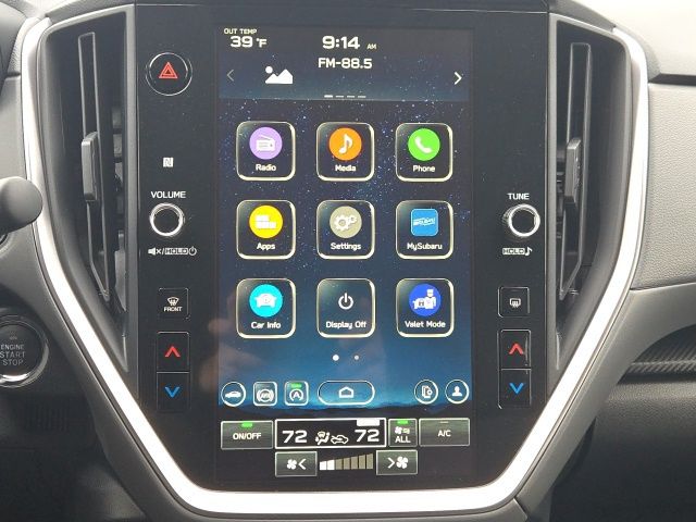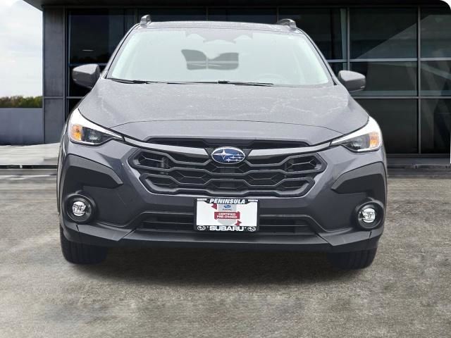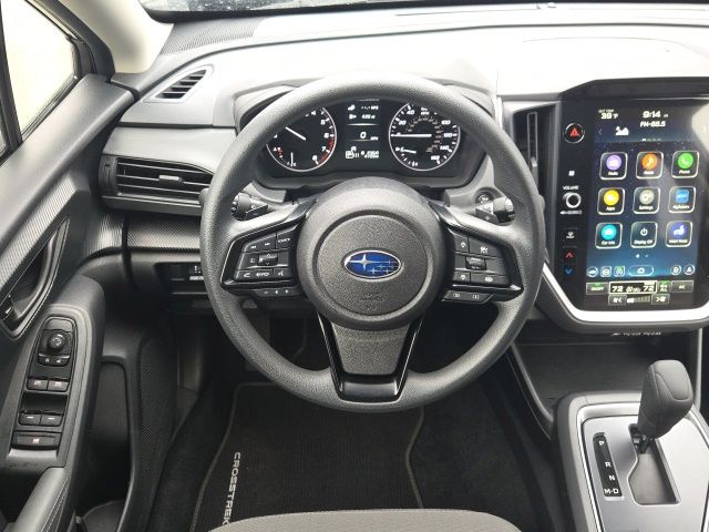 10-Way Power Driver's Seat, 4-Wheel Disc Brakes, 6 Speakers, ABS brakes, Air Conditioning, All-Weather Package, Alloy wheels, AM/FM radio: SiriusXM, Anti-whiplash front head restraints, Auto High-beam Headlights, Auto-Dimming Exterior Mirror w/Approach Light, Auto-Dimming Mirror w/Compass & HomeLink, Automatic temperature control, Blind Spot Detection (BSD), Brake assist, BSD/RCTA & All Wthr Pkg & Pwr Dr. Seat & Pwr Moonrf, Bumpers: body-color, Cloth Upholstery, Crosstrek Mirror Package, Driver door bin, Driver vanity mirror, Dual front impact airbags, Dual front side impact airbags, Dual-Mode Heated Front Seats, Electronic Stability Control, Emergency communication system, Exterior Parking Camera Rear, Four wheel independent suspension, Front anti-roll bar, Front Bucket Seats, Front Center Armrest, Front dual zone A/C, Front fog lights, Front reading lights, Fully automatic headlights, Heated Power Exterior Mirrors, Illuminated entry, Knee airbag, LED Upgrade, Low tire pressure warning, Occupant sensing airbag, Outside temperature display, Overhead airbag, Overhead console, Panic alarm, Passenger door bin, Passenger vanity mirror, Power door mirrors, Power Moonroof, Power steering, Power windows, Radio data system, Radio: Subaru 11.6" Multimedia Plus System, Rear anti-roll bar, Rear Cross-Traffic Alert (RCTA) System, Rear seat center armrest, Rear window defroster, Rear window wiper, Remote keyless entry, Security system, Speed control, Speed-sensing steering, Split folding rear seat, Spoiler, Steering wheel mounted audio controls, Tachometer, Telescoping steering wheel, Tilt steering wheel, Traction control, Trip computer, Turn signal indicator mirrors, Variably intermittent wipers, Wheels: 17" x 7.0" J Machine Finish Aluminum-Alloy, Windshield De-Icer Wipers. 2025 Subaru Crosstrek Premium Crystal Black Silica AWD 2.5L 4-Cylinder DOHC 16V Lineartronic CVT