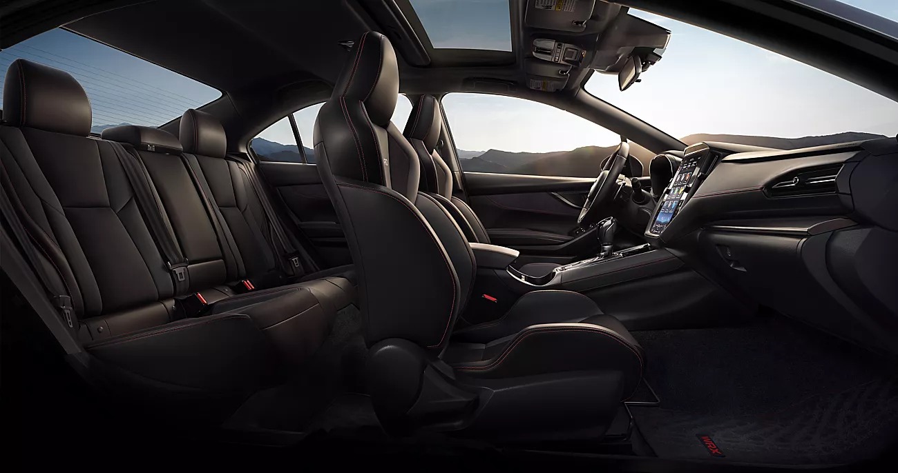 Inside, the 2024 Subaru WRX features a track-themed interior cabin comprising a sport steering wheel with carbon-fiber accents and optional bolstered Recaro™ seats that keep you safe and secure while taking a grand tour. The 60/40 split-folding rear seats allow you to use the back row to store gear and other supplies.