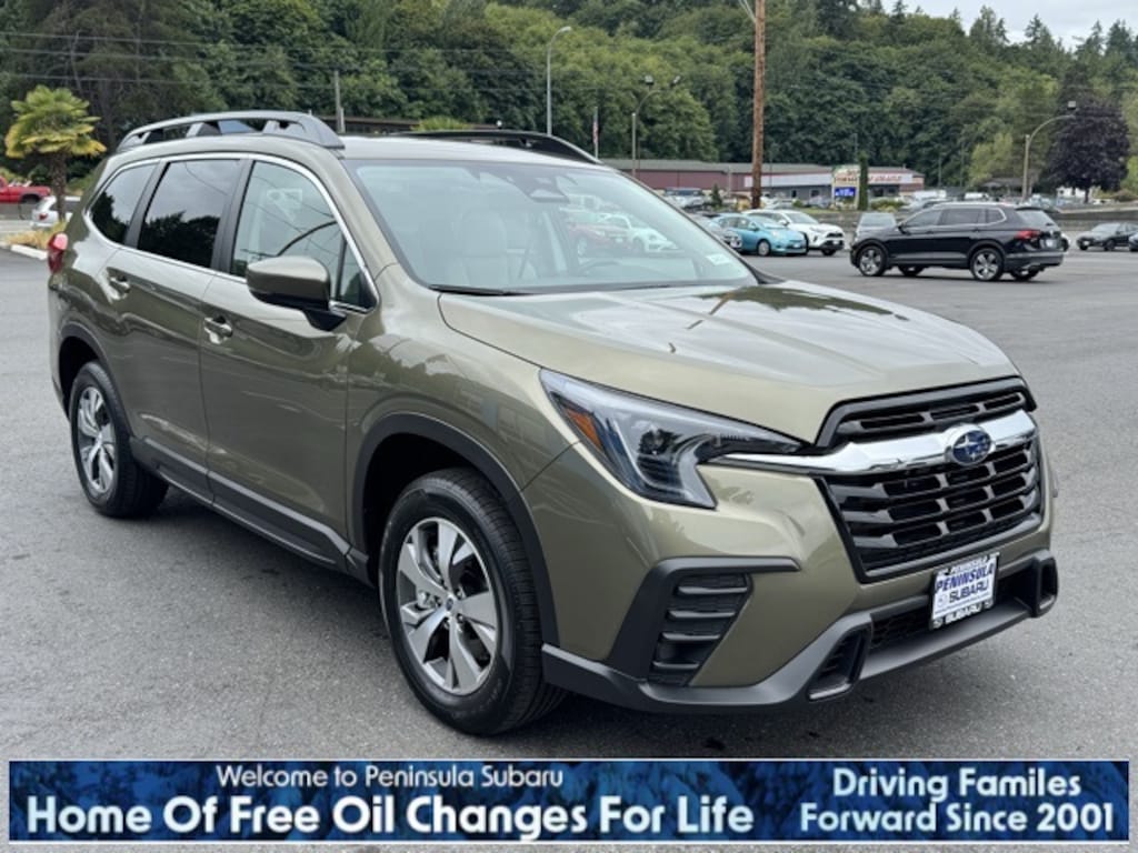 Autumn 2025 Subaru Ascent Premium AWD Lineartronic CVT 2.4L 4-Cylinder DOHC 16V 3rd row seats: bench, 4-Wheel Disc Brakes, 6 Speakers, ABS brakes, Air Conditioning, Alloy wheels, AM/FM radio: SiriusXM with 360L, Apple CarPlay & Android Auto, Auto High-beam Headlights, Auto-Dimming Exterior Mirror w/Approach Light, Auto-dimming Rear-View mirror, Automatic temperature control, Brake assist, Bumpers: body-color, Cargo Tray, Compass, Delay-off headlights, Driver door bin, Driver vanity mirror, Dual front impact airbags, Dual front side impact airbags, Electronic Stability Control, Emergency communication system: MySubaru Safety (3-year free trial), Exterior Parking Camera Rear, Four wheel independent suspension, Front anti-roll bar, Front Bucket Seats, Front Center Armrest, Front dual zone A/C, Front reading lights, Fully automatic headlights, Garage door transmitter: HomeLink, Heated door mirrors, Heated Front Bucket Seats, Heated front seats, Illuminated entry, Knee airbag, Leather Shift Knob, Leather steering wheel, LED Upgrade, Low tire pressure warning, Occupant sensing airbag, Outside temperature display, Overhead airbag, Overhead console, Panic alarm, Passenger door bin, Passenger vanity mirror, Power door mirrors, Power driver seat, Power Liftgate, Power steering, Power windows, Radio data system, Radio: Subaru 11.6" Multimedia Plus System, Rear air conditioning, Rear anti-roll bar, Rear reading lights, Rear seat center armrest, Rear window defroster, Rear window wiper, Reclining 3rd row seat, Remote keyless entry, Security system, Speed control, Speed-sensing steering, Spill Resistant Coated Cloth Upholstery, Split folding rear seat, Spoiler, Steering wheel mounted audio controls, Tachometer, Telescoping steering wheel, Tilt steering wheel, Traction control, Trip computer, Turn signal indicator mirrors, Variably intermittent wipers, Wheels: 18" x 7.5 J Gray Alloy w/Machine Finish.