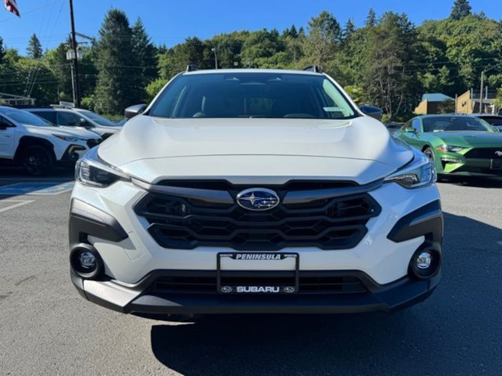 Crystal White Pearl 2025 Subaru Crosstrek Limited AWD Lineartronic CVT 2.5L 4-Cylinder DOHC 16V 4-Wheel Disc Brakes, 6 Speakers, ABS brakes, Air Conditioning, Alloy wheels, AM/FM radio: SiriusXM, Anti-whiplash front head restraints, Auto High-beam Headlights, Auto-Dimming Exterior Mirror w/Approach Light, Auto-Dimming Mirror w/Compass & HomeLink, Automatic temperature control, Brake assist, Bumpers: body-color, Crosstrek Mirror Package, Crystal White Pearl Body Side Molding, Driver door bin, Driver vanity mirror, Dual front impact airbags, Dual front side impact airbags, Electronic Stability Control, Emergency communication system, Exterior Parking Camera Rear, Four wheel independent suspension, Front anti-roll bar, Front Bucket Seats, Front Center Armrest, Front dual zone A/C, Front fog lights, Front reading lights, Fully automatic headlights, harman/kardon Audio & Power Moonroof, harman/kardon Surround Sound Speaker System, Heated door mirrors, Heated Front Bucket Seats, Heated front seats, Illuminated entry, Knee airbag, Leather Shift Knob, Leather steering wheel, Leather-Trimmed Upholstery, LED Upgrade, Low tire pressure warning, Occupant sensing airbag, Outside temperature display, Overhead airbag, Overhead console, Panic alarm, Passenger door bin, Passenger vanity mirror, Power door mirrors, Power driver seat, Power Moonroof, Power steering, Power windows, Radio data system, Radio: Subaru 11.6" Multimedia Plus System, Rear anti-roll bar, Rear seat center armrest, Rear window defroster, Rear window wiper, Remote keyless entry, Security system, Speed control, Speed-sensing steering, Splash Guards, Split folding rear seat, Spoiler, Steering wheel mounted audio controls, Tachometer, Telescoping steering wheel, Tilt steering wheel, Traction control, Trip computer, Turn signal indicator mirrors, Variably intermittent wipers, Wheels: 18" x 7.0" J Machine Finish Aluminum-Alloy.