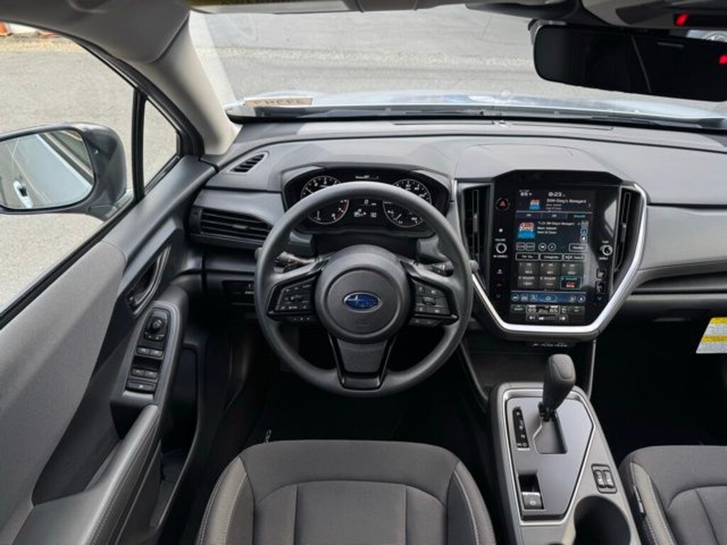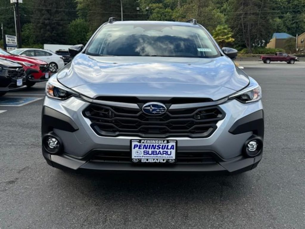 Silver Metallic 2025 Subaru Crosstrek Premium AWD Lineartronic CVT 2.5L 4-Cylinder DOHC 16V 4-Wheel Disc Brakes, 6 Speakers, ABS brakes, Air Conditioning, Alloy wheels, AM/FM radio: SiriusXM, Anti-whiplash front head restraints, Auto High-beam Headlights, Auto-Dimming Exterior Mirror w/Approach Light, Auto-Dimming Mirror w/Compass & HomeLink, Automatic temperature control, Brake assist, Bumpers: body-color, Cloth Upholstery, Crosstrek Mirror Package, Driver door bin, Driver vanity mirror, Dual front impact airbags, Dual front side impact airbags, Electronic Stability Control, Emergency communication system, Exterior Parking Camera Rear, Four wheel independent suspension, Front anti-roll bar, Front Bucket Seats, Front Center Armrest, Front dual zone A/C, Front fog lights, Front reading lights, Fully automatic headlights, Illuminated entry, Knee airbag, Low tire pressure warning, Occupant sensing airbag, Outside temperature display, Overhead airbag, Overhead console, Panic alarm, Passenger door bin, Passenger vanity mirror, Power door mirrors, Power steering, Power windows, Radio data system, Radio: Subaru 11.6" Multimedia Plus System, Rear anti-roll bar, Rear seat center armrest, Rear window defroster, Rear window wiper, Remote keyless entry, Security system, Speed control, Speed-sensing steering, Split folding rear seat, Spoiler, Steering wheel mounted audio controls, Tachometer, Telescoping steering wheel, Tilt steering wheel, Traction control, Trip computer, Turn signal indicator mirrors, Variably intermittent wipers, Wheels: 17" x 7.0" J Machine Finish Aluminum-Alloy.