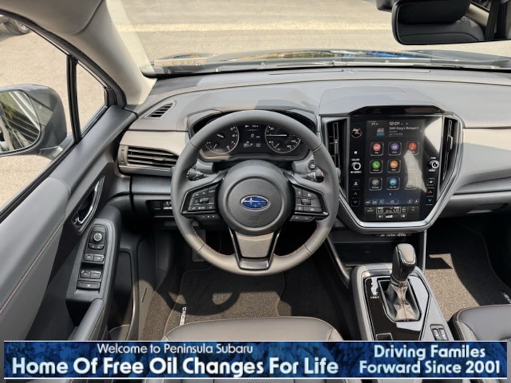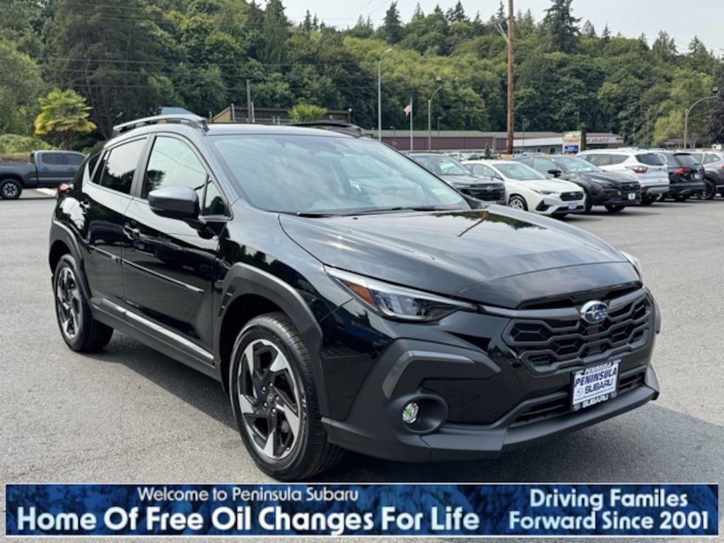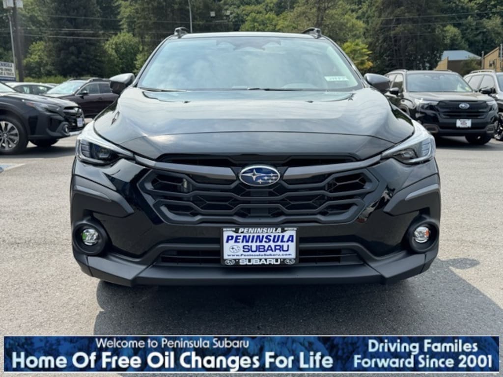 Black / Silver 2025 Subaru Crosstrek Limited AWD Lineartronic CVT 2.5L 4-Cylinder DOHC 16V 4-Wheel Disc Brakes, 6 Speakers, ABS brakes, Air Conditioning, Alloy wheels, AM/FM radio: SiriusXM, Anti-whiplash front head restraints, Auto High-beam Headlights, Auto-Dimming Exterior Mirror w/Approach Light, Auto-Dimming Mirror w/Compass & HomeLink, Automatic temperature control, Brake assist, Bumpers: body-color, Crosstrek Mirror Package, Crystal Black Silica Body Side Molding, Driver door bin, Driver vanity mirror, Dual front impact airbags, Dual front side impact airbags, Electronic Stability Control, Emergency communication system, Exterior Parking Camera Rear, Four wheel independent suspension, Front anti-roll bar, Front Bucket Seats, Front Center Armrest, Front dual zone A/C, Front fog lights, Front reading lights, Fully automatic headlights, Heated door mirrors, Heated Front Bucket Seats, Heated front seats, Illuminated entry, Knee airbag, Leather Shift Knob, Leather steering wheel, Leather-Trimmed Upholstery, LED Upgrade, Low tire pressure warning, Occupant sensing airbag, Outside temperature display, Overhead airbag, Overhead console, Panic alarm, Passenger door bin, Passenger vanity mirror, Power door mirrors, Power driver seat, Power steering, Power windows, Radio data system, Radio: Subaru 11.6" Multimedia Plus System, Rear anti-roll bar, Rear seat center armrest, Rear window defroster, Rear window wiper, Remote keyless entry, Security system, Speed control, Speed-sensing steering, Splash Guards, Split folding rear seat, Spoiler, Steering wheel mounted audio controls, Tachometer, Telescoping steering wheel, Tilt steering wheel, Traction control, Trip computer, Turn signal indicator mirrors, Variably intermittent wipers, Wheels: 18" x 7.0" J Machine Finish Aluminum-Alloy.