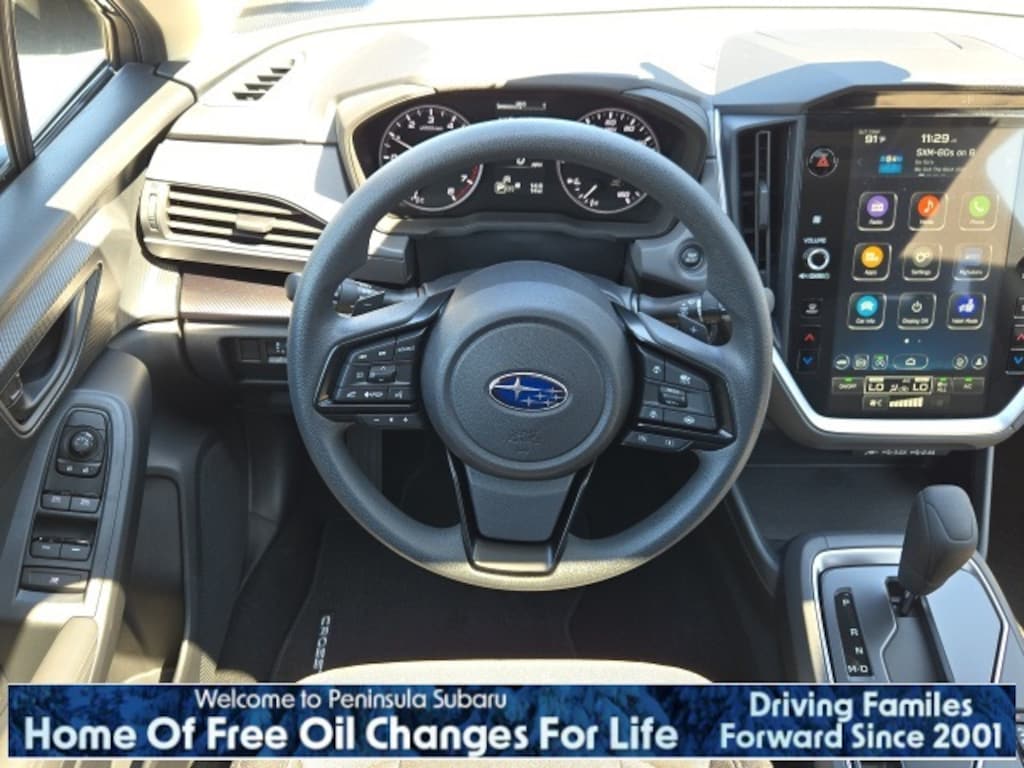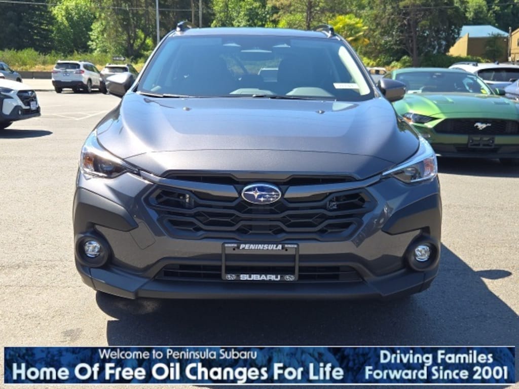 Gray 2025 Subaru Crosstrek Premium AWD Lineartronic CVT 2.5L 4-Cylinder DOHC 16V 4-Wheel Disc Brakes, 6 Speakers, ABS brakes, Air Conditioning, Alloy wheels, AM/FM radio: SiriusXM, Anti-whiplash front head restraints, Auto High-beam Headlights, Auto-Dimming Exterior Mirror w/Approach Light, Auto-Dimming Mirror w/Compass & HomeLink, Automatic temperature control, Brake assist, Bumpers: body-color, Cloth Upholstery, Crosstrek Mirror Package, Driver door bin, Driver vanity mirror, Dual front impact airbags, Dual front side impact airbags, Electronic Stability Control, Emergency communication system, Exterior Parking Camera Rear, Four wheel independent suspension, Front anti-roll bar, Front Bucket Seats, Front Center Armrest, Front dual zone A/C, Front fog lights, Front reading lights, Fully automatic headlights, Illuminated entry, Knee airbag, LED Upgrade, Low tire pressure warning, Occupant sensing airbag, Outside temperature display, Overhead airbag, Overhead console, Panic alarm, Passenger door bin, Passenger vanity mirror, Power door mirrors, Power steering, Power windows, Radio data system, Radio: Subaru 11.6" Multimedia Plus System, Rear anti-roll bar, Rear seat center armrest, Rear window defroster, Rear window wiper, Remote keyless entry, Security system, Speed control, Speed-sensing steering, Split folding rear seat, Spoiler, Steering wheel mounted audio controls, Tachometer, Telescoping steering wheel, Tilt steering wheel, Traction control, Trip computer, Turn signal indicator mirrors, Variably intermittent wipers, Wheels: 17" x 7.0" J Machine Finish Aluminum-Alloy.