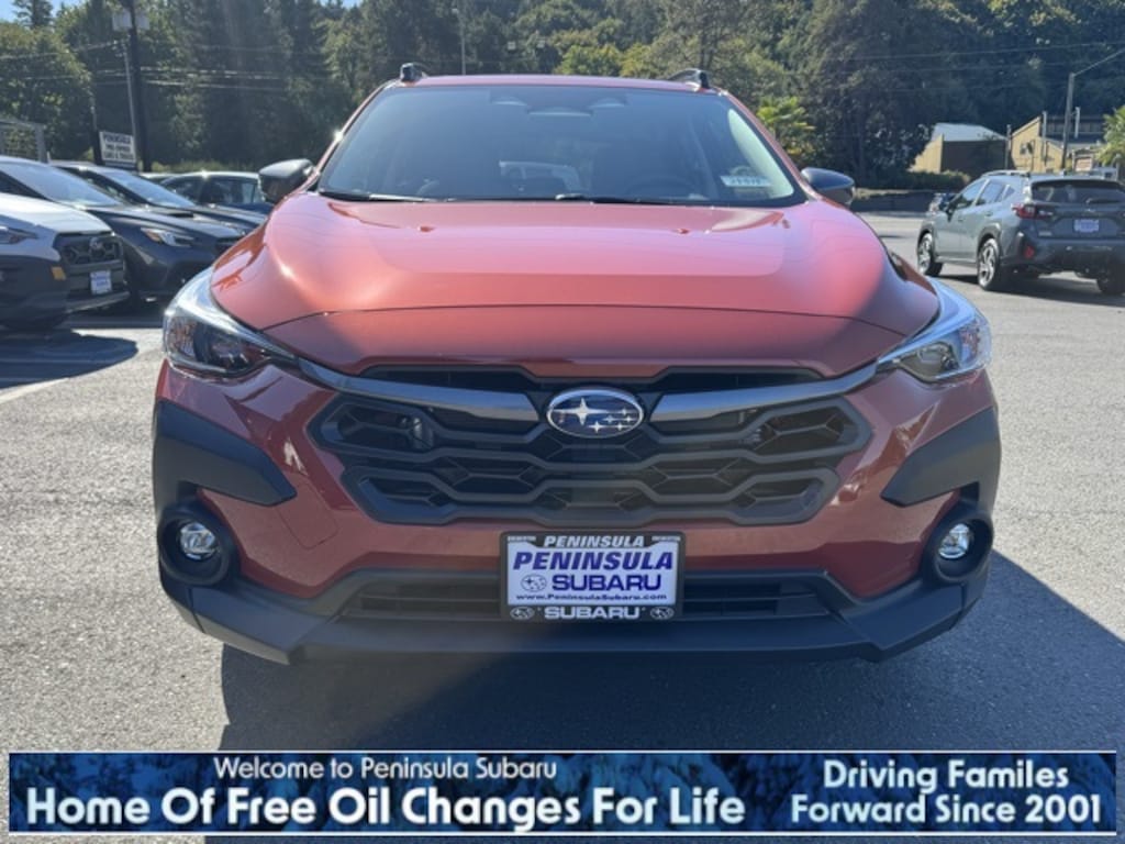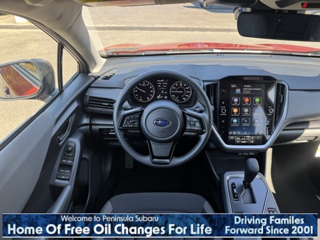 Sun Blaze Prl 2025 Subaru Crosstrek Premium AWD Lineartronic CVT 2.5L 4-Cylinder DOHC 16V 4-Wheel Disc Brakes, 6 Speakers, ABS brakes, Air Conditioning, Alloy wheels, AM/FM radio: SiriusXM, Anti-whiplash front head restraints, Auto High-beam Headlights, Auto-Dimming Exterior Mirror w/Approach Light, Auto-Dimming Mirror w/Compass & HomeLink, Automatic temperature control, Brake assist, Bumpers: body-color, Cloth Upholstery, Crosstrek Mirror Package, Driver door bin, Driver vanity mirror, Dual front impact airbags, Dual front side impact airbags, Electronic Stability Control, Emergency communication system, Exterior Parking Camera Rear, Four wheel independent suspension, Front anti-roll bar, Front Bucket Seats, Front Center Armrest, Front dual zone A/C, Front fog lights, Front reading lights, Fully automatic headlights, Illuminated entry, Knee airbag, Low tire pressure warning, Occupant sensing airbag, Outside temperature display, Overhead airbag, Overhead console, Panic alarm, Passenger door bin, Passenger vanity mirror, Power door mirrors, Power steering, Power windows, Radio data system, Radio: Subaru 11.6" Multimedia Plus System, Rear anti-roll bar, Rear seat center armrest, Rear window defroster, Rear window wiper, Remote keyless entry, Security system, Speed control, Speed-sensing steering, Split folding rear seat, Spoiler, Steering wheel mounted audio controls, Tachometer, Telescoping steering wheel, Tilt steering wheel, Traction control, Trip computer, Turn signal indicator mirrors, Variably intermittent wipers, Wheels: 17" x 7.0" J Machine Finish Aluminum-Alloy.
