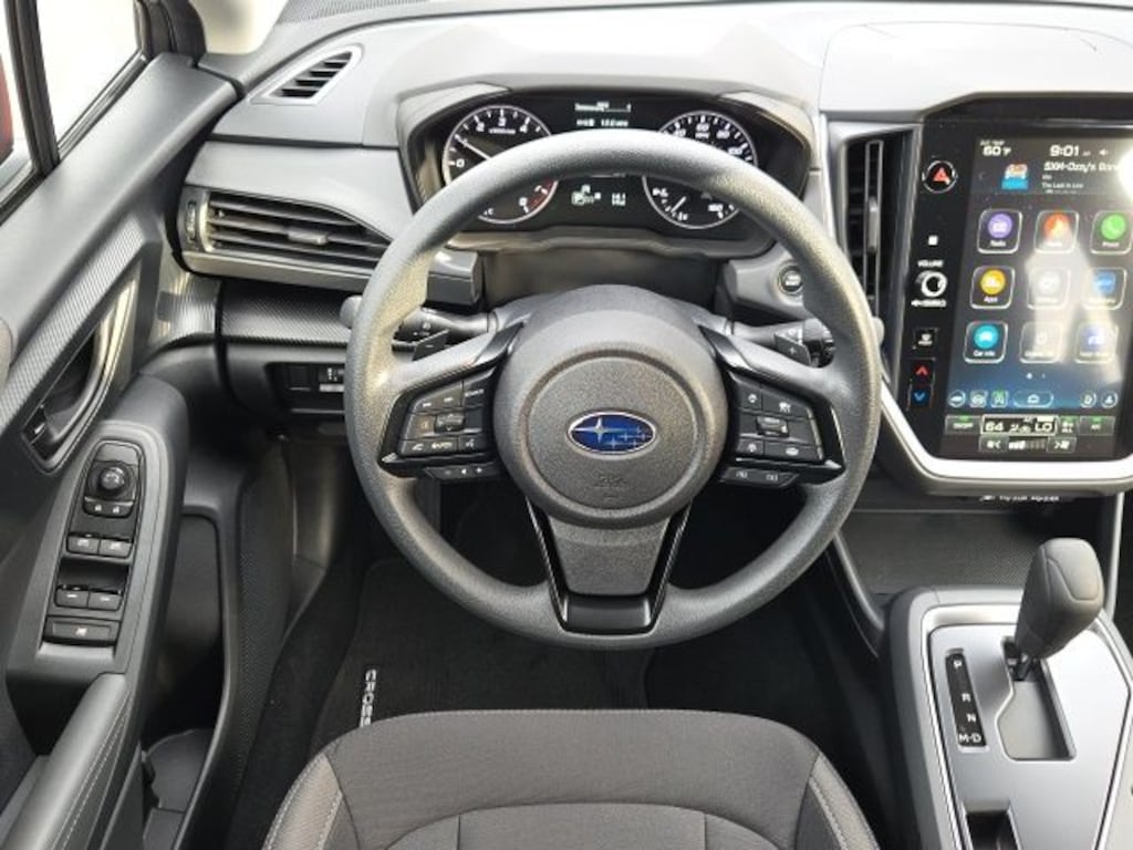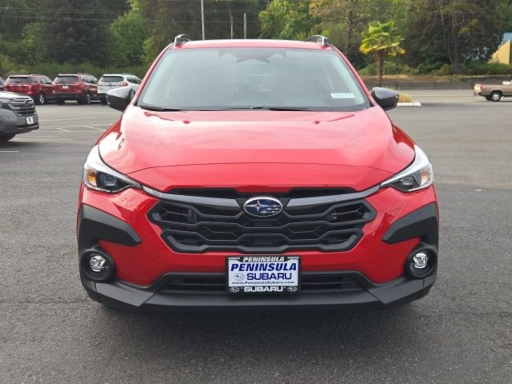 Pure Red 2025 Subaru Crosstrek Premium AWD Lineartronic CVT 2.5L 4-Cylinder DOHC 16V 4-Wheel Disc Brakes, 6 Speakers, ABS brakes, Air Conditioning, Alloy wheels, AM/FM radio: SiriusXM, Anti-whiplash front head restraints, Auto High-beam Headlights, Auto-Dimming Exterior Mirror w/Approach Light, Auto-Dimming Mirror w/Compass & HomeLink, Automatic temperature control, Brake assist, Bumpers: body-color, Cloth Upholstery, Crosstrek Mirror Package, Driver door bin, Driver vanity mirror, Dual front impact airbags, Dual front side impact airbags, Electronic Stability Control, Emergency communication system, Exterior Parking Camera Rear, Four wheel independent suspension, Front anti-roll bar, Front Bucket Seats, Front Center Armrest, Front dual zone A/C, Front fog lights, Front reading lights, Fully automatic headlights, Illuminated entry, Knee airbag, Low tire pressure warning, Occupant sensing airbag, Outside temperature display, Overhead airbag, Overhead console, Panic alarm, Passenger door bin, Passenger vanity mirror, Power door mirrors, Power steering, Power windows, Radio data system, Radio: Subaru 11.6" Multimedia Plus System, Rear anti-roll bar, Rear seat center armrest, Rear window defroster, Rear window wiper, Remote keyless entry, Security system, Speed control, Speed-sensing steering, Split folding rear seat, Spoiler, Steering wheel mounted audio controls, Tachometer, Telescoping steering wheel, Tilt steering wheel, Traction control, Trip computer, Turn signal indicator mirrors, Variably intermittent wipers, Wheels: 17" x 7.0" J Machine Finish Aluminum-Alloy.