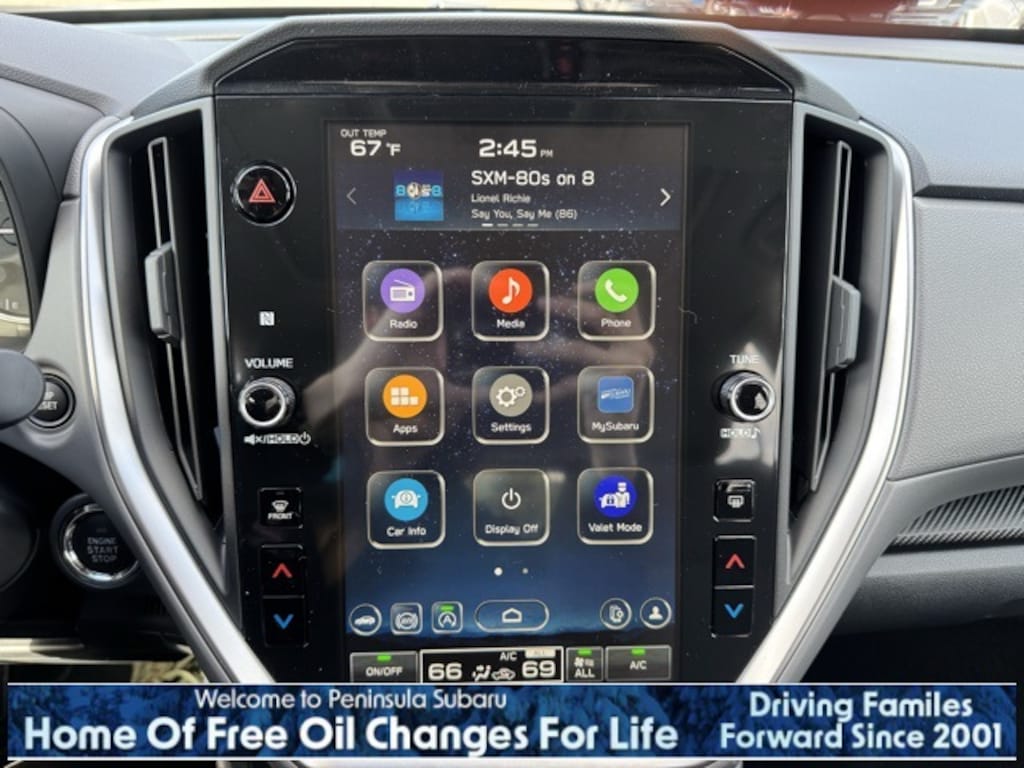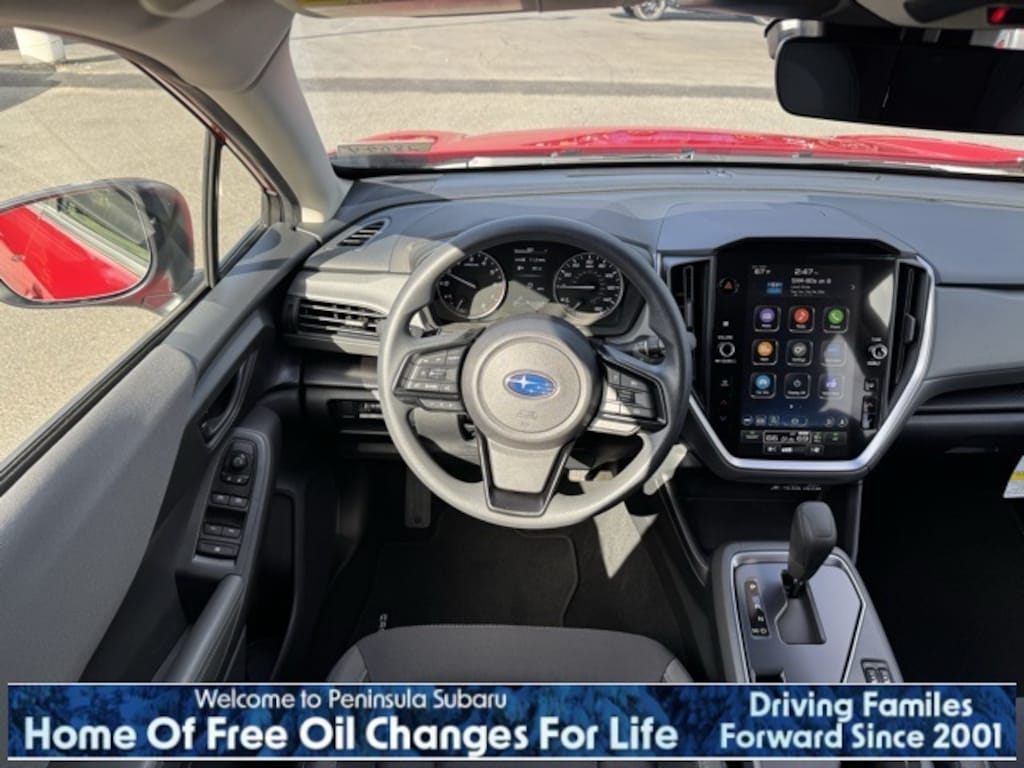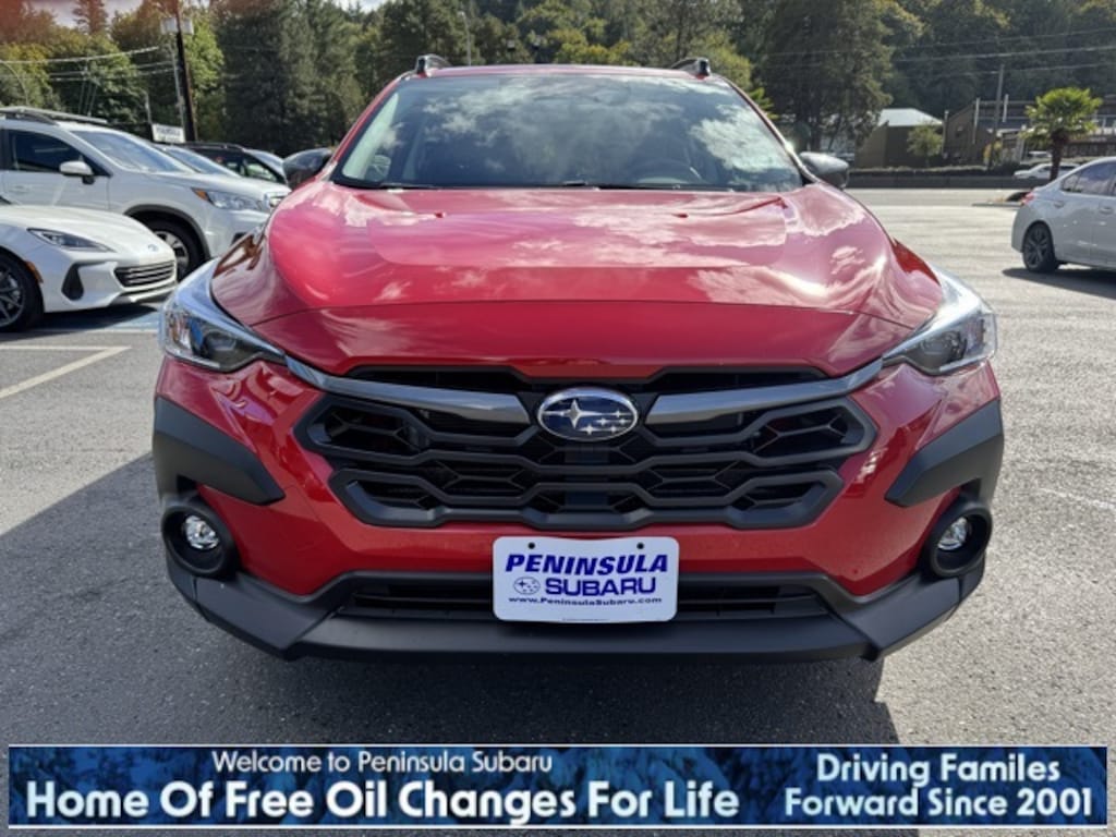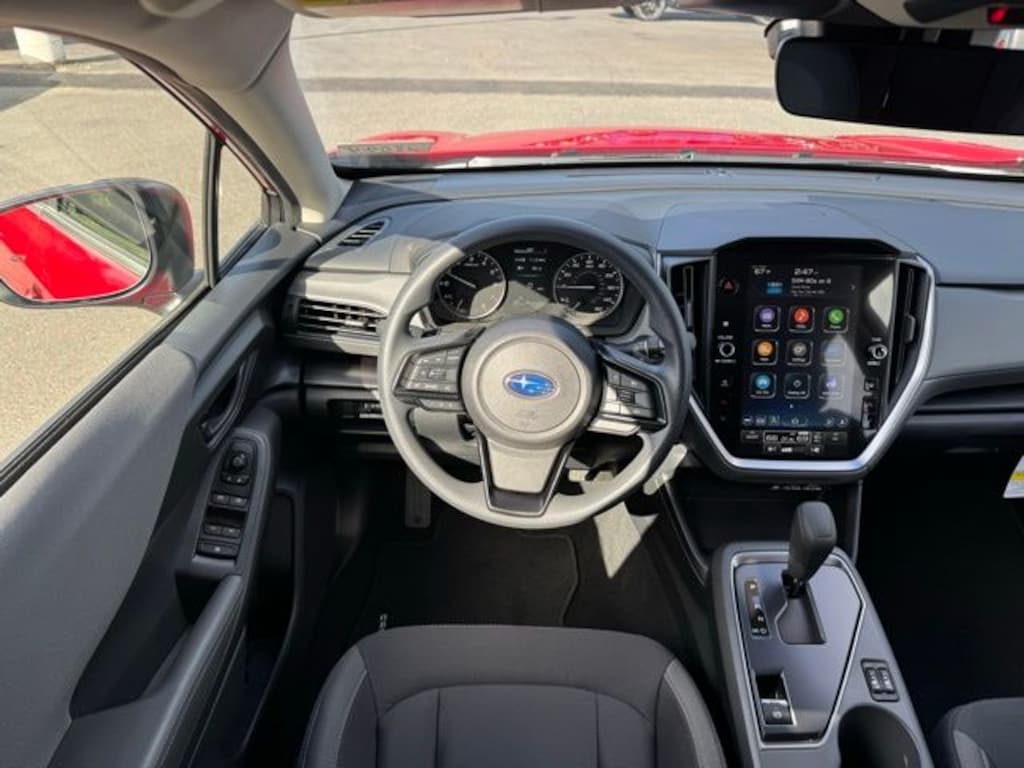 Pure Red 2025 Subaru Crosstrek Premium AWD Lineartronic CVT 2.5L 4-Cylinder DOHC 16V 4-Wheel Disc Brakes, 6 Speakers, ABS brakes, Air Conditioning, Alloy wheels, AM/FM radio: SiriusXM, Anti-whiplash front head restraints, Auto High-beam Headlights, Auto-Dimming Exterior Mirror w/Approach Light, Auto-Dimming Mirror w/Compass & HomeLink, Automatic temperature control, Brake assist, Bumpers: body-color, Cloth Upholstery, Crosstrek Mirror Package, Driver door bin, Driver vanity mirror, Dual front impact airbags, Dual front side impact airbags, Electronic Stability Control, Emergency communication system, Exterior Parking Camera Rear, Four wheel independent suspension, Front anti-roll bar, Front Bucket Seats, Front Center Armrest, Front dual zone A/C, Front fog lights, Front reading lights, Fully automatic headlights, Illuminated entry, Knee airbag, Low tire pressure warning, Occupant sensing airbag, Outside temperature display, Overhead airbag, Overhead console, Panic alarm, Passenger door bin, Passenger vanity mirror, Power door mirrors, Power steering, Power windows, Radio data system, Radio: Subaru 11.6" Multimedia Plus System, Rear anti-roll bar, Rear seat center armrest, Rear window defroster, Rear window wiper, Remote keyless entry, Security system, Speed control, Speed-sensing steering, Split folding rear seat, Spoiler, Steering wheel mounted audio controls, Tachometer, Telescoping steering wheel, Tilt steering wheel, Traction control, Trip computer, Turn signal indicator mirrors, Variably intermittent wipers, Wheels: 17" x 7.0" J Machine Finish Aluminum-Alloy.
