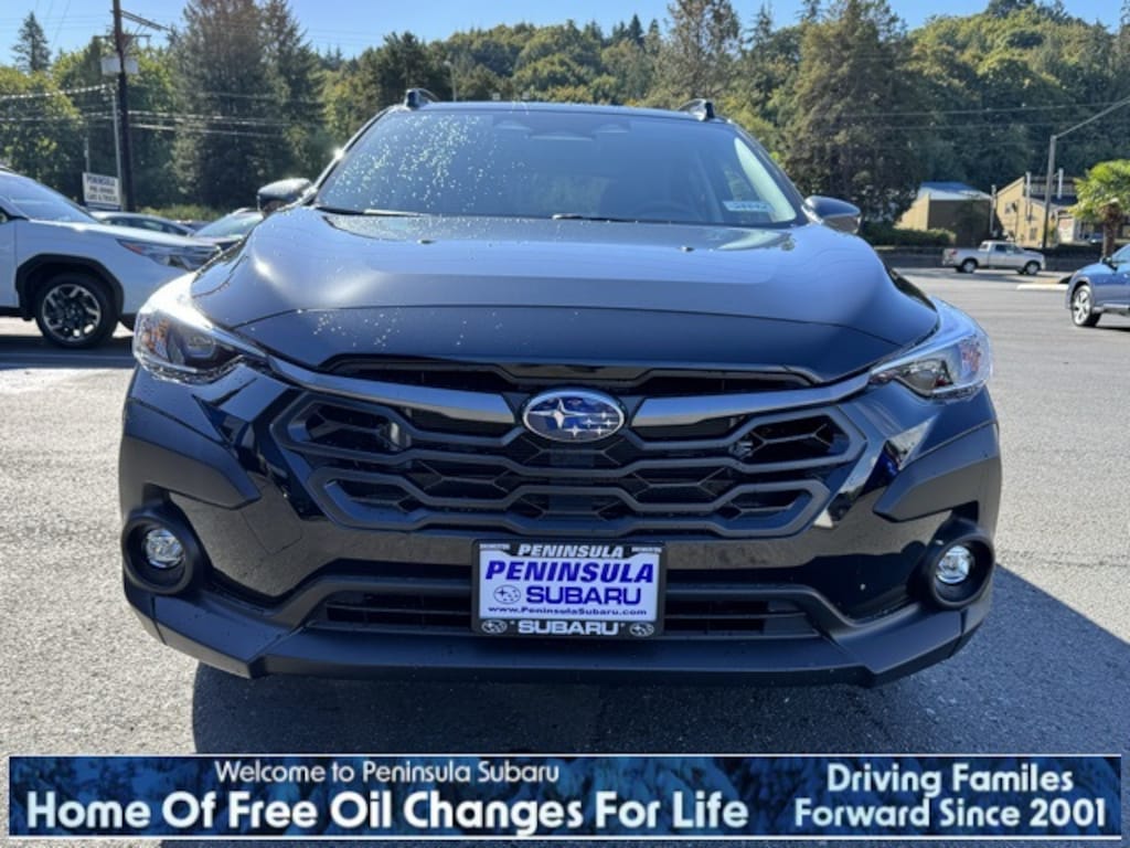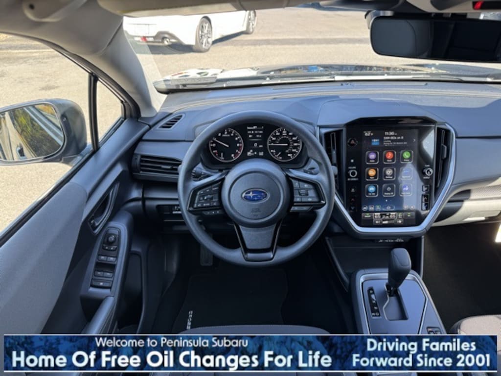 Black / Silver 2025 Subaru Crosstrek Premium AWD Lineartronic CVT 2.5L 4-Cylinder DOHC 16V 4-Wheel Disc Brakes, 6 Speakers, ABS brakes, Air Conditioning, Alloy wheels, AM/FM radio: SiriusXM, Anti-whiplash front head restraints, Auto High-beam Headlights, Auto-Dimming Exterior Mirror w/Approach Light, Auto-Dimming Mirror w/Compass & HomeLink, Automatic temperature control, Brake assist, Bumpers: body-color, Cloth Upholstery, Crosstrek Mirror Package, Driver door bin, Driver vanity mirror, Dual front impact airbags, Dual front side impact airbags, Electronic Stability Control, Emergency communication system, Exterior Parking Camera Rear, Four wheel independent suspension, Front anti-roll bar, Front Bucket Seats, Front Center Armrest, Front dual zone A/C, Front fog lights, Front reading lights, Fully automatic headlights, Illuminated entry, Knee airbag, Low tire pressure warning, Occupant sensing airbag, Outside temperature display, Overhead airbag, Overhead console, Panic alarm, Passenger door bin, Passenger vanity mirror, Power door mirrors, Power steering, Power windows, Radio data system, Radio: Subaru 11.6" Multimedia Plus System, Rear anti-roll bar, Rear seat center armrest, Rear window defroster, Rear window wiper, Remote keyless entry, Security system, Speed control, Speed-sensing steering, Split folding rear seat, Spoiler, Steering wheel mounted audio controls, Tachometer, Telescoping steering wheel, Tilt steering wheel, Traction control, Trip computer, Turn signal indicator mirrors, Variably intermittent wipers, Wheels: 17" x 7.0" J Machine Finish Aluminum-Alloy.