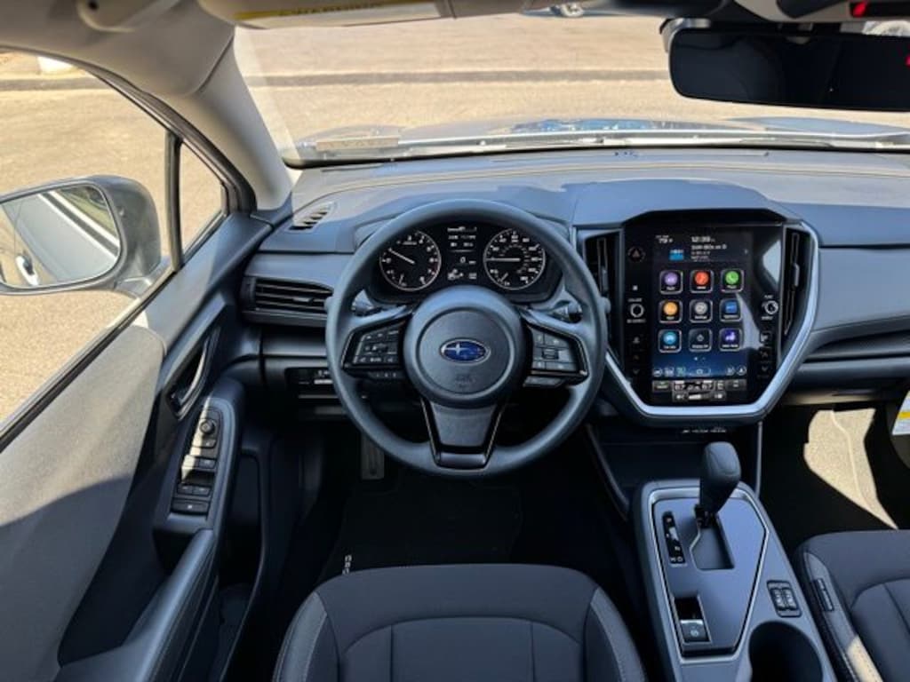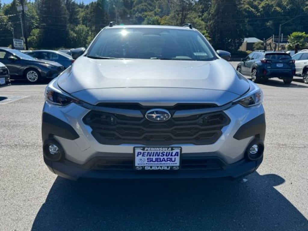 Silver Metallic 2025 Subaru Crosstrek Premium AWD Lineartronic CVT 2.5L 4-Cylinder DOHC 16V 4-Wheel Disc Brakes, 6 Speakers, ABS brakes, Air Conditioning, Alloy wheels, AM/FM radio: SiriusXM, Anti-whiplash front head restraints, Auto High-beam Headlights, Auto-Dimming Exterior Mirror w/Approach Light, Auto-Dimming Mirror w/Compass & HomeLink, Automatic temperature control, Brake assist, Bumpers: body-color, Cloth Upholstery, Crosstrek Mirror Package, Driver door bin, Driver vanity mirror, Dual front impact airbags, Dual front side impact airbags, Electronic Stability Control, Emergency communication system, Exterior Parking Camera Rear, Four wheel independent suspension, Front anti-roll bar, Front Bucket Seats, Front Center Armrest, Front dual zone A/C, Front fog lights, Front reading lights, Fully automatic headlights, Illuminated entry, Knee airbag, Low tire pressure warning, Occupant sensing airbag, Outside temperature display, Overhead airbag, Overhead console, Panic alarm, Passenger door bin, Passenger vanity mirror, Power door mirrors, Power steering, Power windows, Radio data system, Radio: Subaru 11.6" Multimedia Plus System, Rear anti-roll bar, Rear seat center armrest, Rear window defroster, Rear window wiper, Remote keyless entry, Security system, Speed control, Speed-sensing steering, Split folding rear seat, Spoiler, Steering wheel mounted audio controls, Tachometer, Telescoping steering wheel, Tilt steering wheel, Traction control, Trip computer, Turn signal indicator mirrors, Variably intermittent wipers, Wheels: 17" x 7.0" J Machine Finish Aluminum-Alloy.