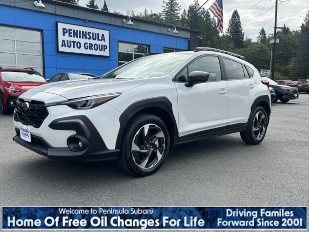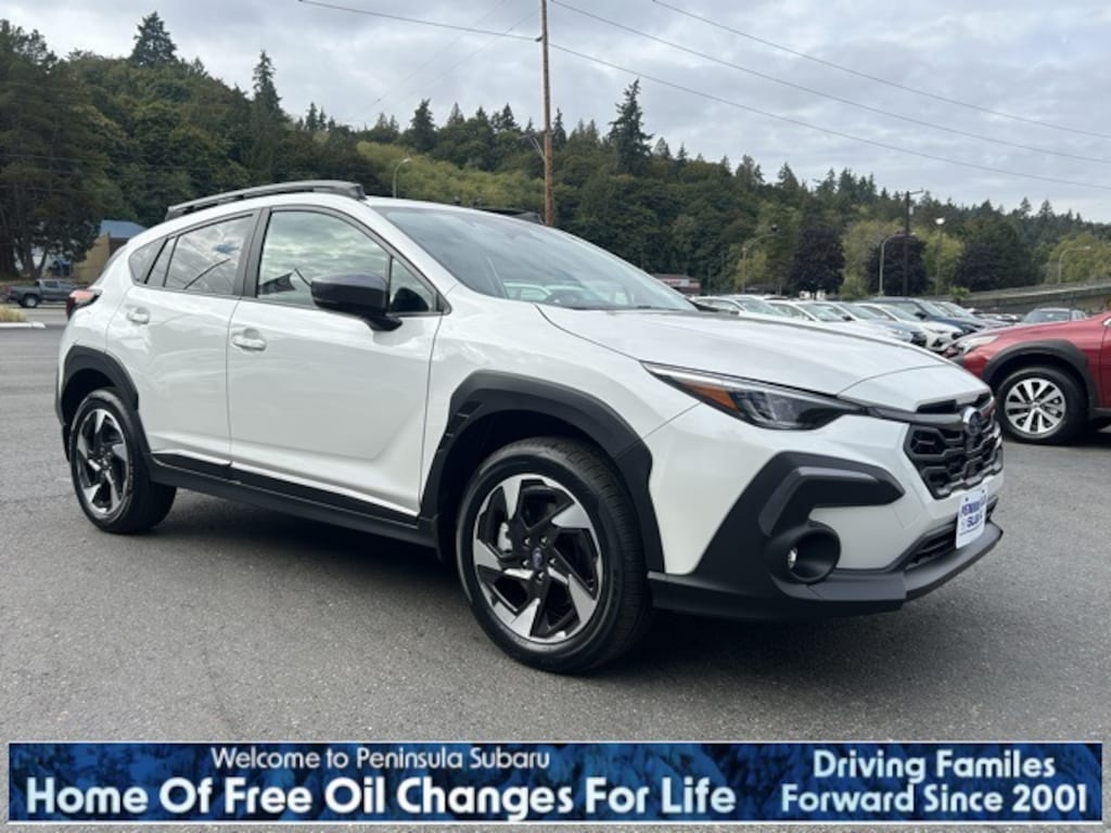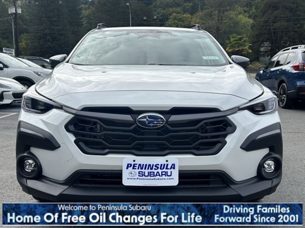 White Pearl 2025 Subaru Crosstrek Limited AWD Lineartronic CVT 2.5L 4-Cylinder DOHC 16V 4-Wheel Disc Brakes, 6 Speakers, ABS brakes, Air Conditioning, Alloy wheels, AM/FM radio: SiriusXM, Anti-whiplash front head restraints, Auto High-beam Headlights, Auto-Dimming Exterior Mirror w/Approach Light, Auto-Dimming Mirror w/Compass & HomeLink, Automatic temperature control, Brake assist, Bumpers: body-color, Crosstrek Mirror Package, Driver door bin, Driver vanity mirror, Dual front impact airbags, Dual front side impact airbags, Electronic Stability Control, Emergency communication system, Exterior Parking Camera Rear, Four wheel independent suspension, Front anti-roll bar, Front Bucket Seats, Front Center Armrest, Front dual zone A/C, Front fog lights, Front reading lights, Fully automatic headlights, Heated door mirrors, Heated Front Bucket Seats, Heated front seats, Illuminated entry, Knee airbag, Leather Shift Knob, Leather steering wheel, Leather-Trimmed Upholstery, Low tire pressure warning, Occupant sensing airbag, Outside temperature display, Overhead airbag, Overhead console, Panic alarm, Passenger door bin, Passenger vanity mirror, Power door mirrors, Power driver seat, Power steering, Power windows, Radio data system, Radio: Subaru 11.6" Multimedia Plus System, Rear anti-roll bar, Rear seat center armrest, Rear window defroster, Rear window wiper, Remote keyless entry, Security system, Speed control, Speed-sensing steering, Splash Guards, Split folding rear seat, Spoiler, Steering wheel mounted audio controls, Tachometer, Telescoping steering wheel, Tilt steering wheel, Traction control, Trip computer, Turn signal indicator mirrors, Variably intermittent wipers, Wheels: 18" x 7.0" J Machine Finish Aluminum-Alloy.