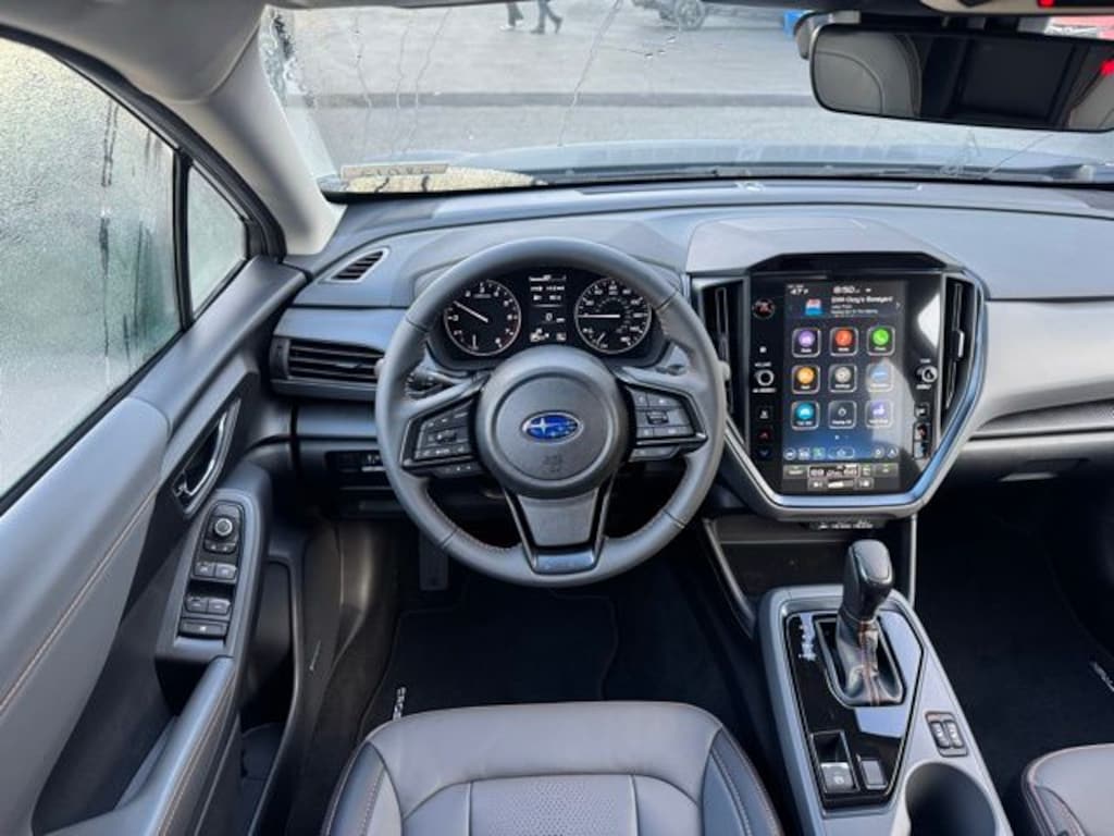 Gray 2025 Subaru Crosstrek Limited AWD Lineartronic CVT 2.5L 4-Cylinder DOHC 16V 4-Wheel Disc Brakes, 6 Speakers, ABS brakes, Air Conditioning, Alloy wheels, AM/FM radio: SiriusXM, Anti-whiplash front head restraints, Auto High-beam Headlights, Auto-Dimming Exterior Mirror w/Approach Light, Auto-Dimming Mirror w/Compass & HomeLink, Automatic temperature control, Brake assist, Bumpers: body-color, Crosstrek Mirror Package, Driver door bin, Driver vanity mirror, Dual front impact airbags, Dual front side impact airbags, Electronic Stability Control, Emergency communication system, Exterior Parking Camera Rear, Four wheel independent suspension, Front anti-roll bar, Front Bucket Seats, Front Center Armrest, Front dual zone A/C, Front fog lights, Front reading lights, Fully automatic headlights, Heated door mirrors, Heated Front Bucket Seats, Heated front seats, Illuminated entry, Knee airbag, Leather Shift Knob, Leather steering wheel, Leather-Trimmed Upholstery, Low tire pressure warning, Magnetite Gray Metallic Body Side Molding, Occupant sensing airbag, Outside temperature display, Overhead airbag, Overhead console, Panic alarm, Passenger door bin, Passenger vanity mirror, Power door mirrors, Power driver seat, Power steering, Power windows, Radio data system, Radio: Subaru 11.6" Multimedia Plus System, Rear anti-roll bar, Rear seat center armrest, Rear window defroster, Rear window wiper, Remote keyless entry, Security system, Speed control, Speed-sensing steering, Splash Guards, Split folding rear seat, Spoiler, Steering wheel mounted audio controls, Tachometer, Telescoping steering wheel, Tilt steering wheel, Traction control, Trip computer, Turn signal indicator mirrors, Variably intermittent wipers, Wheels: 18" x 7.0" J Machine Finish Aluminum-Alloy.
