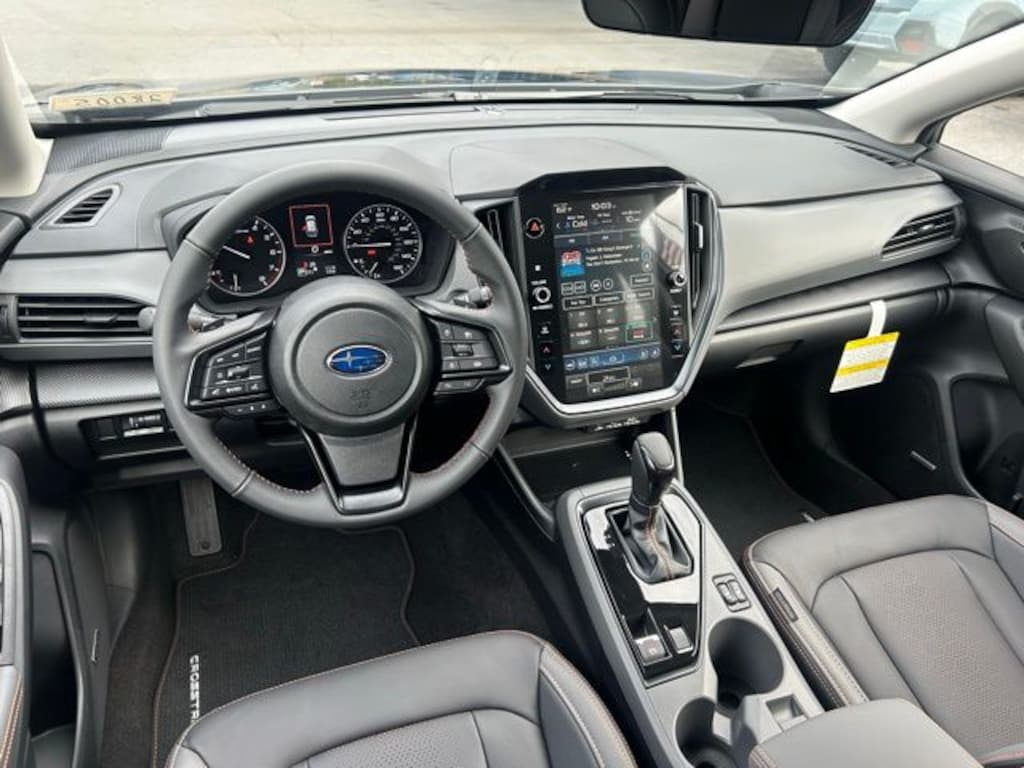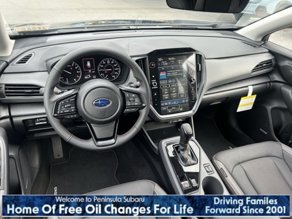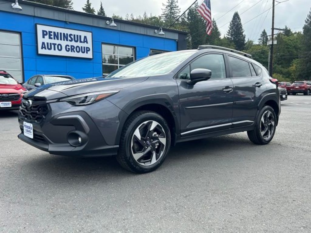 Gray 2025 Subaru Crosstrek Limited AWD Lineartronic CVT 2.5L 4-Cylinder DOHC 16V 4-Wheel Disc Brakes, 6 Speakers, ABS brakes, Air Conditioning, Alloy wheels, AM/FM radio: SiriusXM, Anti-whiplash front head restraints, Auto High-beam Headlights, Auto-Dimming Exterior Mirror w/Approach Light, Auto-Dimming Mirror w/Compass & HomeLink, Automatic temperature control, Brake assist, Bumpers: body-color, Crosstrek Mirror Package, Driver door bin, Driver vanity mirror, Dual front impact airbags, Dual front side impact airbags, Electronic Stability Control, Emergency communication system, Exterior Parking Camera Rear, Four wheel independent suspension, Front anti-roll bar, Front Bucket Seats, Front Center Armrest, Front dual zone A/C, Front fog lights, Front reading lights, Fully automatic headlights, Heated door mirrors, Heated Front Bucket Seats, Heated front seats, Illuminated entry, Knee airbag, Leather Shift Knob, Leather steering wheel, Leather-Trimmed Upholstery, Low tire pressure warning, Magnetite Gray Metallic Body Side Molding, Occupant sensing airbag, Outside temperature display, Overhead airbag, Overhead console, Panic alarm, Passenger door bin, Passenger vanity mirror, Power door mirrors, Power driver seat, Power steering, Power windows, Radio data system, Radio: Subaru 11.6" Multimedia Plus System, Rear anti-roll bar, Rear seat center armrest, Rear window defroster, Rear window wiper, Remote keyless entry, Security system, Speed control, Speed-sensing steering, Splash Guards, Split folding rear seat, Spoiler, Steering wheel mounted audio controls, Tachometer, Telescoping steering wheel, Tilt steering wheel, Traction control, Trip computer, Turn signal indicator mirrors, Variably intermittent wipers, Wheels: 18" x 7.0" J Machine Finish Aluminum-Alloy.