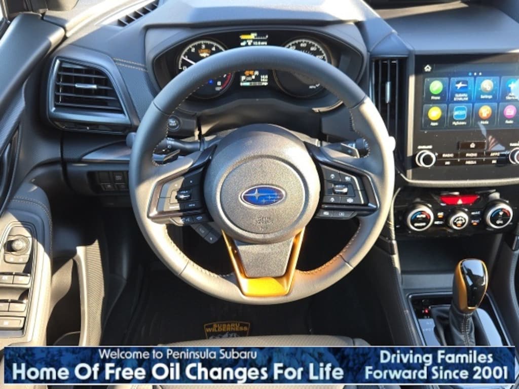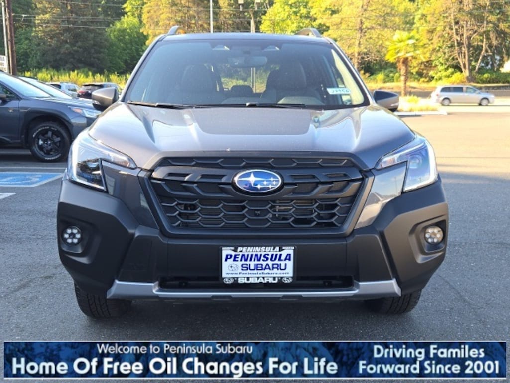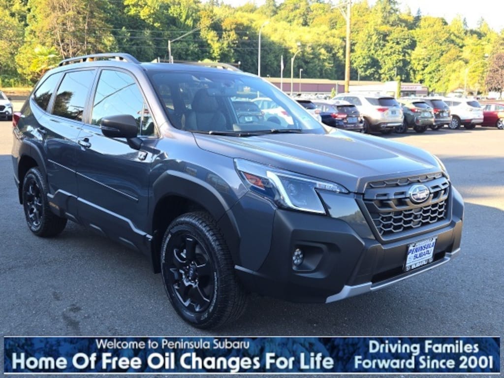 Gray 2025 Subaru Forester Wilderness AWD Lineartronic CVT 2.5L 4-Cylinder DOHC 16V 4-Wheel Disc Brakes, 6 Speakers, ABS brakes, Air Conditioning, Alloy wheels, AM/FM radio: SiriusXM, Anti-whiplash front head restraints, Auto High-beam Headlights, Auto-Dimming Exterior Mirror w/Approach Light, Auto-Dimming Mirror w/Compass & HomeLink, Automatic temperature control, Body Side Molding - Magnetite Gray Metallic, Brake assist, Bumpers: body-color, Driver door bin, Driver vanity mirror, Dual front impact airbags, Dual front side impact airbags, Electronic Stability Control, Emergency communication system: MySubaru Safety (3-year free trial), Exterior Parking Camera Rear, Four wheel independent suspension, Front anti-roll bar, Front Bucket Seats, Front Center Armrest, Front dual zone A/C, Front fog lights, Front reading lights, Fully automatic headlights, Heated door mirrors, Heated Front Bucket Seats, Heated front seats, Illuminated entry, Knee airbag, Leather Shift Knob, Leather steering wheel, Low tire pressure warning, Occupant sensing airbag, Outside temperature display, Overhead airbag, Overhead console, Panic alarm, Passenger door bin, Passenger vanity mirror, Power door mirrors, Power driver seat, Power moonroof: Panoramic, Power steering, Power windows, Radio data system, Radio: Subaru 8.0" Multimedia Plus System, Rear anti-roll bar, Rear Bumper Cover, Rear seat center armrest, Rear window defroster, Rear window wiper, Remote keyless entry, Security system, Speed control, Speed-sensing steering, Splash Guards - Wilderness, Split folding rear seat, Spoiler, Steering wheel mounted audio controls, Tachometer, Telescoping steering wheel, Textured StarTex Upholstery, Tilt steering wheel, Traction control, Trip computer, Turn signal indicator mirrors, Variably intermittent wipers, Wheels: 17" x 7.0 J Matte Black Finish Alum-Alloy.