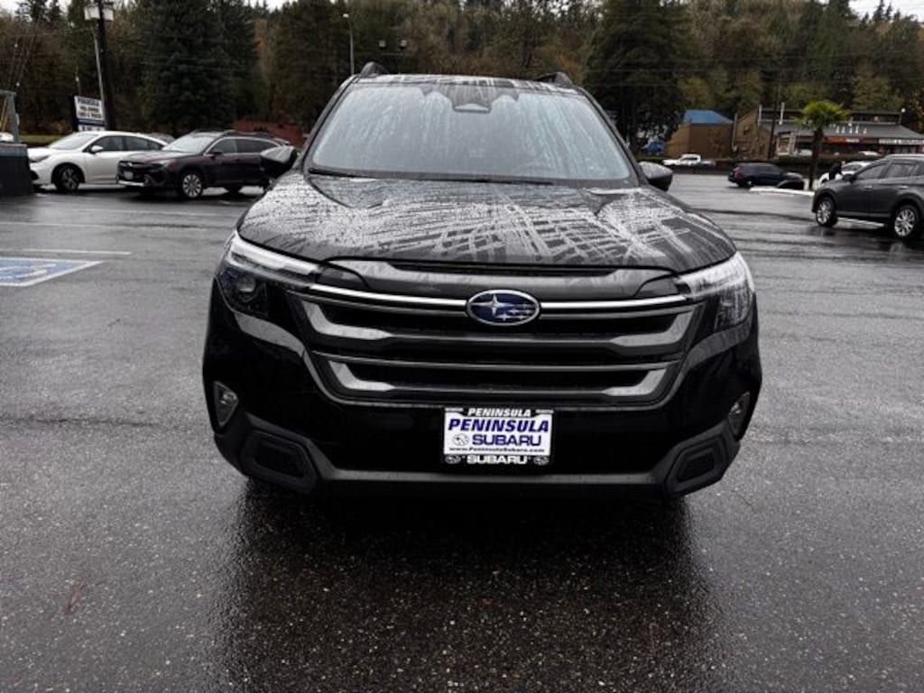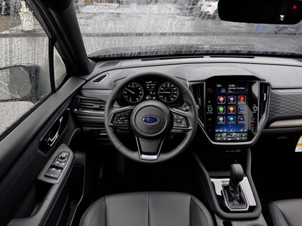 Black / Silver 2025 Subaru Forester Limited AWD Lineartronic CVT 2.5L 4-Cylinder DOHC 16V 4-Wheel Disc Brakes, 6 Speakers, ABS brakes, Air Conditioning, Alloy wheels, AM/FM radio: SiriusXM with 360L, Anti-whiplash front head restraints, Auto High-beam Headlights, Auto-Dimming Exterior Mirror w/Approach Light, Auto-Dimming Mirror w/Compass & HomeLink, Automatic temperature control, Body Side Molding - Crystal Black Silica, Brake assist, Bumpers: body-color, Cargo Tray, Driver door bin, Driver vanity mirror, Dual front impact airbags, Dual front side impact airbags, Electronic Stability Control, Emergency communication system: MySubaru Safety (3-year free trial), Exterior Parking Camera Rear, Four wheel independent suspension, Front anti-roll bar, Front Bucket Seats, Front Center Armrest, Front dual zone A/C, Front fog lights, Front reading lights, Fully automatic headlights, harman/kardon Audio & Navigation & RAB, Heated door mirrors, Heated Front Bucket Seats, Heated front seats, Heated steering wheel, Illuminated entry, Knee airbag, Leather steering wheel, Low tire pressure warning, Occupant sensing airbag, Outside temperature display, Overhead airbag, Overhead console, Panic alarm, Passenger door bin, Passenger vanity mirror, Perforated Leather-Trimmed Upholstery, Power door mirrors, Power driver seat, Power Liftgate, Power moonroof: Panoramic, Power passenger seat, Power steering, Power windows, Radio data system, Radio: Subaru 11.6" Multimedia Navigation System, Radio: Subaru 11.6" Multimedia Plus System, Rear anti-roll bar, Rear seat center armrest, Rear window defroster, Rear window wiper, Remote keyless entry, Reverse Automatic Braking (RAB) System, Security system, Speed control, Speed-sensing steering, Splash Guards, Split folding rear seat, Spoiler, Steering wheel mounted audio controls, Tachometer, Telescoping steering wheel, Tilt steering wheel, Traction control, Trip computer, Turn signal indicator mirrors, Variably intermittent wipers, Wheels: 18" x 7.0 J Dark Metallic Aluminum-Alloy.
