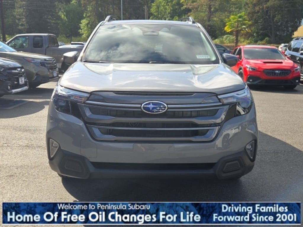 River Rock Prl 2025 Subaru Forester Premium AWD Lineartronic CVT 2.5L 4-Cylinder DOHC 16V 4-Wheel Disc Brakes, 6 Speakers, ABS brakes, Air Conditioning, Alloy wheels, AM/FM radio: SiriusXM with 360L, Anti-whiplash front head restraints, Auto High-beam Headlights, Auto-Dimming Exterior Mirror w/Approach Light, Auto-Dimming Mirror w/Compass & HomeLink, Automatic temperature control, Brake assist, Bumpers: body-color, Cargo Tray, Driver door bin, Driver vanity mirror, Dual front impact airbags, Dual front side impact airbags, Electronic Stability Control, Emergency communication system: MySubaru Safety (3-year free trial), Exterior Parking Camera Rear, Four wheel independent suspension, Front anti-roll bar, Front Bucket Seats, Front Center Armrest, Front dual zone A/C, Front fog lights, Front reading lights, Fully automatic headlights, Heated door mirrors, Heated Front Bucket Seats, Heated front seats, Illuminated entry, Knee airbag, Leather steering wheel, Low tire pressure warning, Occupant sensing airbag, Outside temperature display, Overhead airbag, Overhead console, Panic alarm, Passenger door bin, Passenger vanity mirror, Power door mirrors, Power driver seat, Power moonroof: Panoramic, Power steering, Power windows, Premium Textured Cloth Upholstery, Radio data system, Radio: Subaru 11.6" Multimedia Plus System, Rear anti-roll bar, Rear seat center armrest, Rear window defroster, Rear window wiper, Remote keyless entry, Security system, Speed control, Speed-sensing steering, Split folding rear seat, Spoiler, Steering wheel mounted audio controls, Tachometer, Telescoping steering wheel, Tilt steering wheel, Traction control, Trip computer, Variably intermittent wipers, Wheels: 17" x 7.0 J Dark Metallic Aluminum-Alloy.