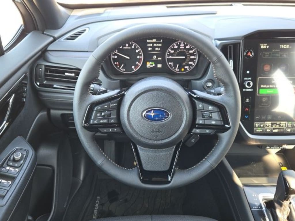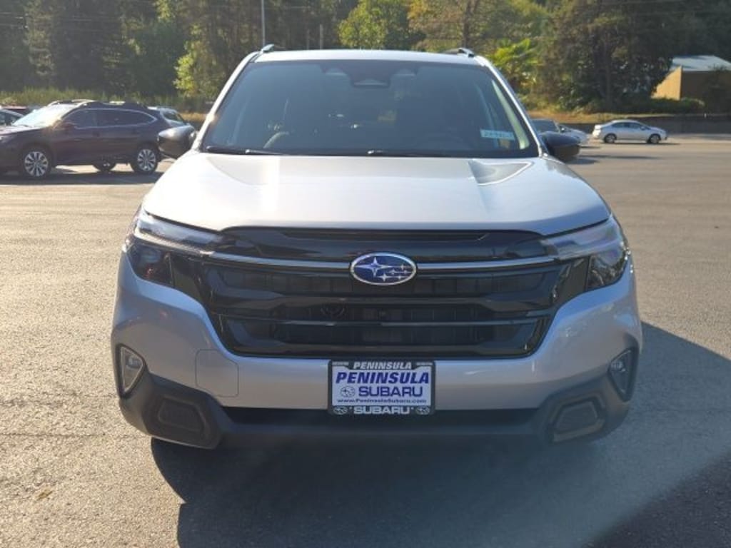 Silver Metallic 2025 Subaru Forester Touring AWD Lineartronic CVT 2.5L 4-Cylinder DOHC 16V 11 Speakers, 4-Wheel Disc Brakes, ABS brakes, Air Conditioning, Alloy wheels, AM/FM radio: SiriusXM with 360L, Anti-whiplash front head restraints, Auto High-beam Headlights, Auto-Dimming Exterior Mirror w/Approach Light, Automatic temperature control, Brake assist, Bumpers: body-color, Cargo Tray, Door Projector Lights, Driver door bin, Driver vanity mirror, Dual front impact airbags, Dual front side impact airbags, Electronic Stability Control, Emergency communication system: MySubaru Safety (3-year free trial), Exterior Parking Camera Rear, Four wheel independent suspension, Front anti-roll bar, Front Bucket Seats, Front Center Armrest, Front dual zone A/C, Front fog lights, Front reading lights, Fully automatic headlights, harman/kardon® Speakers, Heated & Ventilated Front Bucket Seats, Heated door mirrors, Heated front seats, Heated rear seats, Heated steering wheel, HVAC memory, Illuminated entry, Knee airbag, Leather steering wheel, LED Upgrade, Low tire pressure warning, Memory seat, Navigation System, Occupant sensing airbag, Outside temperature display, Overhead airbag, Overhead console, Panic alarm, Passenger door bin, Passenger vanity mirror, Perforated Leather-Trimmed Upholstery, Power door mirrors, Power driver seat, Power Liftgate, Power moonroof: Panoramic, Power passenger seat, Power steering, Power windows, Radio data system, Radio: Subaru 11.6" Multimedia Navigation System, Rear anti-roll bar, Rear seat center armrest, Rear window defroster, Rear window wiper, Remote keyless entry, Security system, Speed control, Speed-sensing steering, Splash Guards, Split folding rear seat, Spoiler, Standard Model, Steering wheel mounted audio controls, Tachometer, Telescoping steering wheel, Tilt steering wheel, Traction control, Trip computer, Turn signal indicator mirrors, Variably intermittent wipers, Ventilated front seats, Wheels: 19" x 7.5 J Dark Gray Aluminum-Alloy.