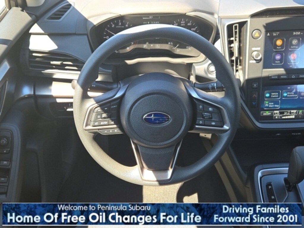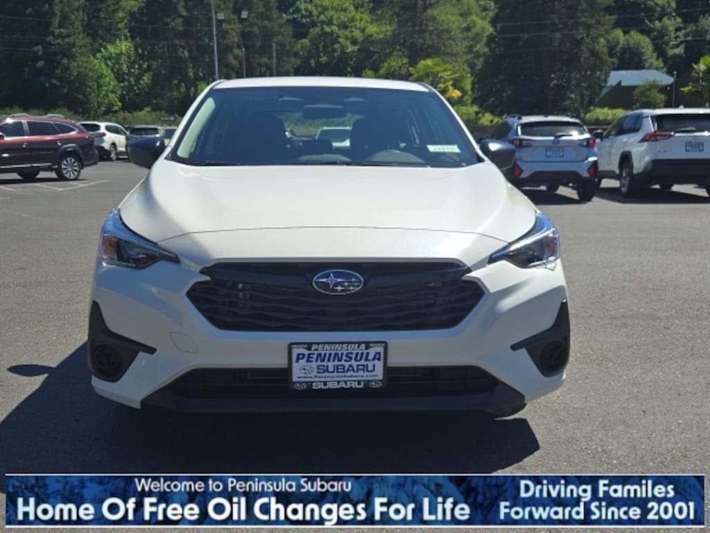White Pearl 2025 Subaru Impreza AWD CVT Lineartronic 2.0L DOHC 4 Speakers, 4-Wheel Disc Brakes, ABS brakes, Air Conditioning, AM/FM radio: SiriusXM, Anti-whiplash front head restraints, Auto High-beam Headlights, Automatic temperature control, Brake assist, Bumpers: body-color, Cloth Upholstery, Driver door bin, Driver vanity mirror, Dual front impact airbags, Dual front side impact airbags, Electronic Stability Control, Exterior Parking Camera Rear, Four wheel independent suspension, Front anti-roll bar, Front Bucket Seats, Front Center Armrest, Front dual zone A/C, Front reading lights, Fully automatic headlights, Illuminated entry, Knee airbag, Low tire pressure warning, Occupant sensing airbag, Outside temperature display, Overhead airbag, Overhead console, Panic alarm, Passenger door bin, Passenger vanity mirror, Power door mirrors, Power steering, Power windows, Radio data system, Radio: Subaru Dual 7" Multimedia System, Rear window defroster, Rear window wiper, Remote keyless entry, Security system, Speed control, Speed-sensing steering, Split folding rear seat, Spoiler, Steering wheel mounted audio controls, Tachometer, Telescoping steering wheel, Tilt steering wheel, Traction control, Trip computer, Variably intermittent wipers, Wheels: 16" x 6.0" 1/2J Steel w/Full Cap.