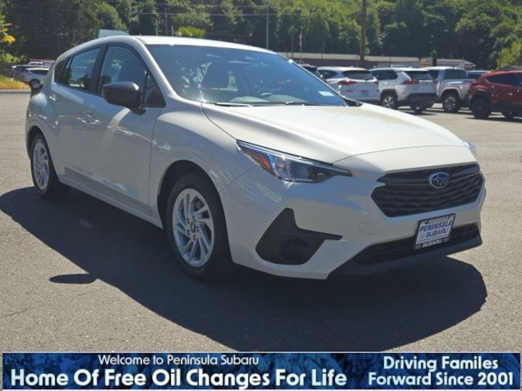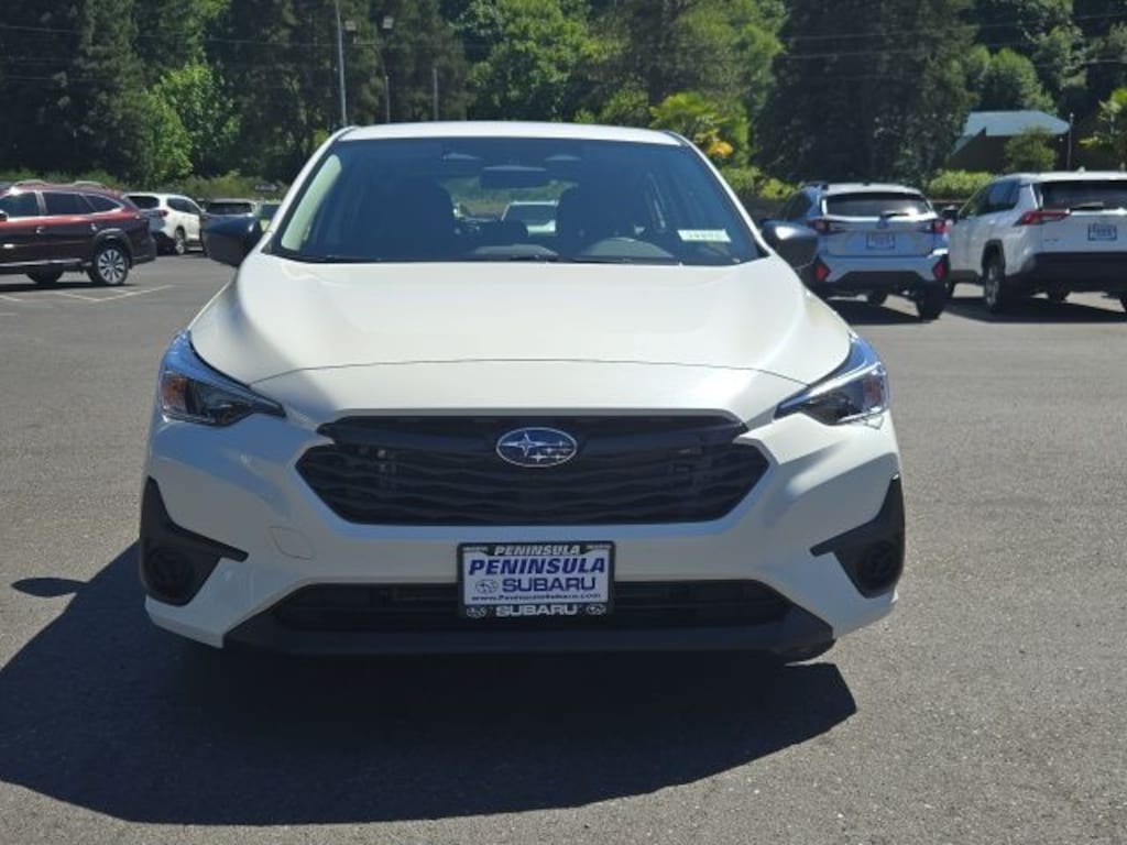 Crystal White Pearl 2025 Subaru Impreza AWD CVT Lineartronic 2.0L DOHC 4 Speakers, 4-Wheel Disc Brakes, ABS brakes, Air Conditioning, Alloy Wheels, AM/FM radio: SiriusXM, Anti-whiplash front head restraints, Auto High-beam Headlights, Automatic temperature control, Brake assist, Bumpers: body-color, Cloth Upholstery, Driver door bin, Driver vanity mirror, Dual front impact airbags, Dual front side impact airbags, Electronic Stability Control, Exterior Parking Camera Rear, Four wheel independent suspension, Front anti-roll bar, Front Bucket Seats, Front Center Armrest, Front dual zone A/C, Front reading lights, Fully automatic headlights, Illuminated entry, Knee airbag, Low tire pressure warning, Occupant sensing airbag, Outside temperature display, Overhead airbag, Overhead console, Panic alarm, Passenger door bin, Passenger vanity mirror, Power door mirrors, Power steering, Power windows, Radio data system, Radio: Subaru Dual 7" Multimedia System, Rear window defroster, Rear window wiper, Remote keyless entry, Security system, Speed control, Speed-sensing steering, Split folding rear seat, Spoiler, Steering wheel mounted audio controls, Tachometer, Telescoping steering wheel, Tilt steering wheel, Traction control, Trip computer, Variably intermittent wipers, Wheels: 16" x 6.0" 1/2J Silver Aluminum Alloy, Wheels: 16" x 6.0" 1/2J Steel w/Full Cap.