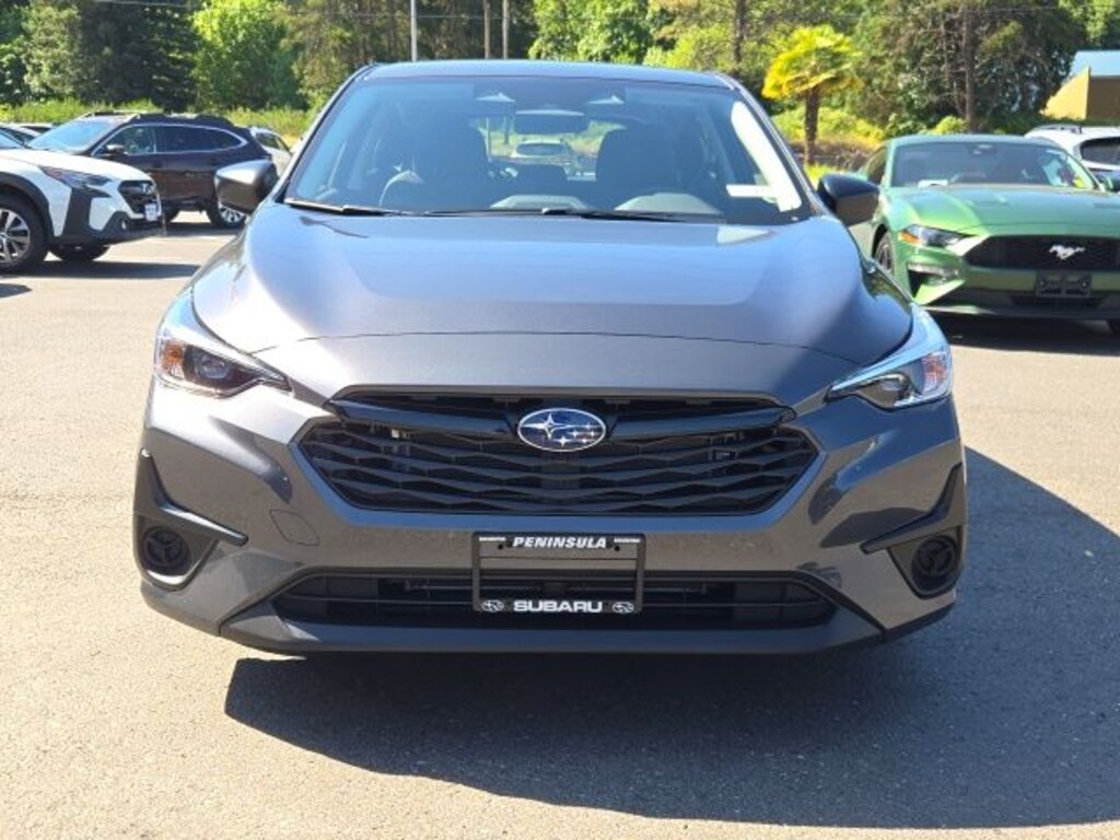 Gray Metallic 2025 Subaru Impreza AWD CVT Lineartronic 2.0L DOHC 4 Speakers, 4-Wheel Disc Brakes, ABS brakes, Air Conditioning, Alloy Wheels, AM/FM radio: SiriusXM, Anti-whiplash front head restraints, Auto High-beam Headlights, Automatic temperature control, Brake assist, Bumpers: body-color, Cloth Upholstery, Driver door bin, Driver vanity mirror, Dual front impact airbags, Dual front side impact airbags, Electronic Stability Control, Exterior Parking Camera Rear, Four wheel independent suspension, Front anti-roll bar, Front Bucket Seats, Front Center Armrest, Front dual zone A/C, Front reading lights, Fully automatic headlights, Illuminated entry, Knee airbag, Low tire pressure warning, Occupant sensing airbag, Outside temperature display, Overhead airbag, Overhead console, Panic alarm, Passenger door bin, Passenger vanity mirror, Power door mirrors, Power steering, Power windows, Radio data system, Radio: Subaru Dual 7" Multimedia System, Rear window defroster, Rear window wiper, Remote keyless entry, Security system, Speed control, Speed-sensing steering, Split folding rear seat, Spoiler, Steering wheel mounted audio controls, Tachometer, Telescoping steering wheel, Tilt steering wheel, Traction control, Trip computer, Variably intermittent wipers, Wheels: 16" x 6.0" 1/2J Silver Aluminum Alloy, Wheels: 16" x 6.0" 1/2J Steel w/Full Cap.