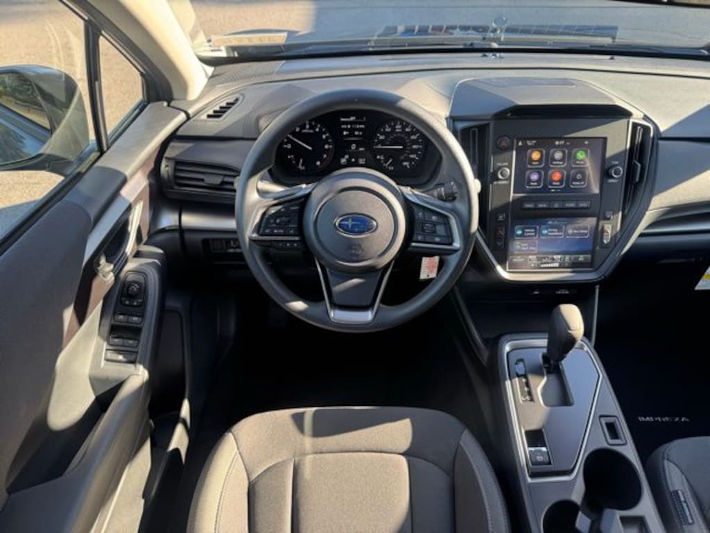 Gray Metallic 2025 Subaru Impreza AWD CVT Lineartronic 2.0L DOHC 4 Speakers, 4-Wheel Disc Brakes, ABS brakes, Air Conditioning, Alloy Wheels, AM/FM radio: SiriusXM, Anti-whiplash front head restraints, Auto High-beam Headlights, Automatic temperature control, Brake assist, Bumpers: body-color, Cloth Upholstery, Driver door bin, Driver vanity mirror, Dual front impact airbags, Dual front side impact airbags, Electronic Stability Control, Exterior Parking Camera Rear, Four wheel independent suspension, Front anti-roll bar, Front Bucket Seats, Front Center Armrest, Front dual zone A/C, Front reading lights, Fully automatic headlights, Illuminated entry, Knee airbag, Low tire pressure warning, Occupant sensing airbag, Outside temperature display, Overhead airbag, Overhead console, Panic alarm, Passenger door bin, Passenger vanity mirror, Power door mirrors, Power steering, Power windows, Radio data system, Radio: Subaru Dual 7" Multimedia System, Rear window defroster, Rear window wiper, Remote keyless entry, Security system, Speed control, Speed-sensing steering, Split folding rear seat, Spoiler, Steering wheel mounted audio controls, Tachometer, Telescoping steering wheel, Tilt steering wheel, Traction control, Trip computer, Variably intermittent wipers, Wheels: 16" x 6.0" 1/2J Silver Aluminum Alloy, Wheels: 16" x 6.0" 1/2J Steel w/Full Cap.