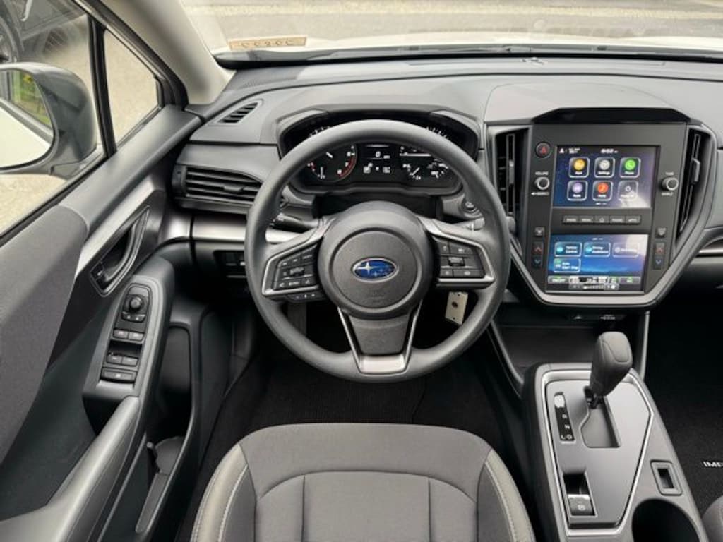 Crystal White Pearl 2025 Subaru Impreza AWD CVT Lineartronic 2.0L DOHC 4 Speakers, 4-Wheel Disc Brakes, ABS brakes, Air Conditioning, AM/FM radio: SiriusXM, Anti-whiplash front head restraints, Auto High-beam Headlights, Automatic temperature control, Brake assist, Bumpers: body-color, Cloth Upholstery, Driver door bin, Driver vanity mirror, Dual front impact airbags, Dual front side impact airbags, Electronic Stability Control, Exterior Parking Camera Rear, Four wheel independent suspension, Front anti-roll bar, Front Bucket Seats, Front Center Armrest, Front dual zone A/C, Front reading lights, Fully automatic headlights, Illuminated entry, Knee airbag, Low tire pressure warning, Occupant sensing airbag, Outside temperature display, Overhead airbag, Overhead console, Panic alarm, Passenger door bin, Passenger vanity mirror, Power door mirrors, Power steering, Power windows, Radio data system, Radio: Subaru Dual 7" Multimedia System, Rear window defroster, Rear window wiper, Remote keyless entry, Security system, Speed control, Speed-sensing steering, Split folding rear seat, Spoiler, Standard Model, Steering wheel mounted audio controls, Tachometer, Telescoping steering wheel, Tilt steering wheel, Traction control, Trip computer, Variably intermittent wipers, Wheels: 16" x 6.0" 1/2J Steel w/Full Cap.