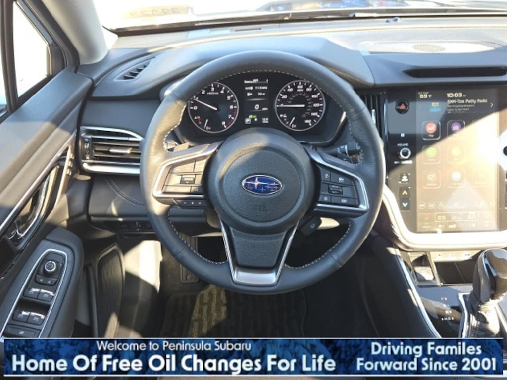 Gray 2025 Subaru Outback Limited AWD CVT Lineartronic 2.5L 4-Cylinder DOHC 16V 12 Speakers, 4-Wheel Disc Brakes, ABS brakes, Air Conditioning, Alloy wheels, AM/FM radio: SiriusXM with 360L, Apple CarPlay & Android Auto, Auto High-beam Headlights, Auto-Dimming Exterior Mirror w/Approach Light, Auto-dimming Rear-View mirror, Automatic temperature control, Brake assist, Bumpers: body-color, Compass, Driver door bin, Driver vanity mirror, Dual front impact airbags, Dual front side impact airbags, Electronic Stability Control, Emergency communication system: MySubaru Safety (3-year free trial), Exterior Parking Camera Rear, Four wheel independent suspension, Front anti-roll bar, Front Bucket Seats, Front Center Armrest w/Storage, Front dual zone A/C, Front fog lights, Front reading lights, Fully automatic headlights, Garage door transmitter: HomeLink, harman/kardon® Speakers, Heated door mirrors, Heated Front Bucket Seats, Heated front seats, Heated rear seats, Heated steering wheel, HVAC memory, Illuminated entry, Knee airbag, Leather Shift Knob, Leather steering wheel, Low tire pressure warning, Magnetite Gray Metallic Body Side Molding, Memory seat, Navigation system: TomTom Navigation w/what3words, Occupant sensing airbag, Outside temperature display, Overhead airbag, Overhead console, Panic alarm, Passenger door bin, Passenger vanity mirror, Perforated Leather-Trimmed Upholstery, Power door mirrors, Power driver seat, Power Liftgate, Power moonroof, Power passenger seat, Power steering, Power windows, Radio: Subaru 11.6" Multimedia System w/Navigation, Rear anti-roll bar, Rear seat center armrest, Rear window defroster, Rear window wiper, Remote keyless entry, Roof rack, Security system, Speed control, Speed-sensing steering, Splash Guards, Split folding rear seat, Spoiler, Steering wheel mounted audio controls, Tachometer, Telescoping steering wheel, Tilt steering wheel, Traction control, Trip computer, Turn signal indicator mirrors, Variably intermittent wipers, Wheels: 18" x 7J Black Aluminum-Alloy.