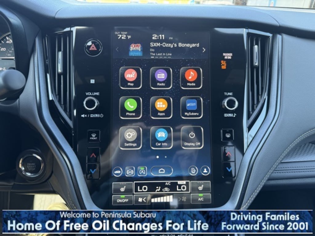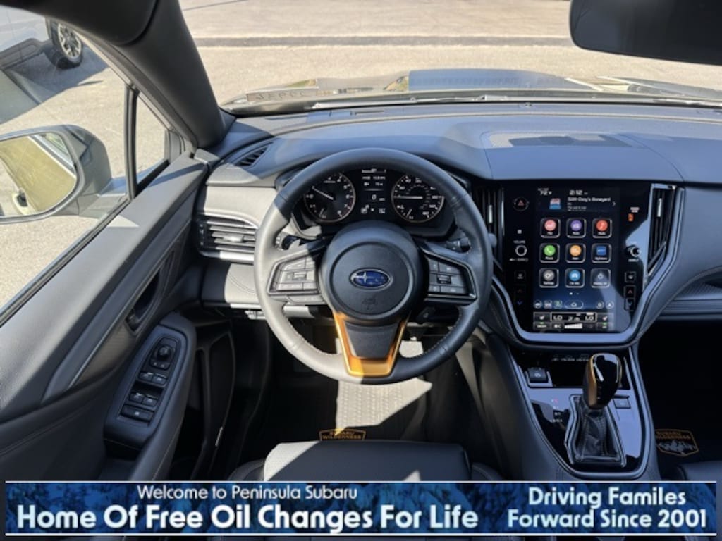 Autumn 2025 Subaru Outback Wilderness AWD CVT Lineartronic 2.4L DOHC 12 Speakers, 4-Wheel Disc Brakes, ABS brakes, Air Conditioning, Alloy wheels, AM/FM radio: SiriusXM with 360L, Apple CarPlay & Android Auto, Auto High-beam Headlights, Auto-Dimming Exterior Mirror w/Approach Light, Auto-dimming Rear-View mirror, Automatic temperature control, Brake assist, Cargo Sidewall Protector, Compass, Driver door bin, Driver vanity mirror, Dual front impact airbags, Dual front side impact airbags, Electronic Stability Control, Emergency communication system: MySubaru Safety (3-year free trial), Exterior Parking Camera Rear, Four wheel independent suspension, Front anti-roll bar, Front Bucket Seats, Front Center Armrest w/Storage, Front dual zone A/C, Front fog lights, Front reading lights, Fully automatic headlights, Garage door transmitter: HomeLink, harman/kardon® Speakers, Heated door mirrors, Heated Front Bucket Seats, Heated front seats, Heated rear seats, Heated steering wheel, Illuminated entry, Knee airbag, Leather steering wheel, Low tire pressure warning, Occupant sensing airbag, Outside temperature display, Overhead airbag, Overhead console, Panic alarm, Passenger door bin, Passenger vanity mirror, Power door mirrors, Power driver seat, Power Liftgate, Power passenger seat, Power steering, Power windows, Radio: Subaru 11.6" Multimedia Plus System, Rear anti-roll bar, Rear seat center armrest, Rear window defroster, Rear window wiper, Remote keyless entry, Roof rack, Security system, Speed control, Speed-sensing steering, Splash Guards, Split folding rear seat, Spoiler, StarTex-Trimmed Upholstery, Steering wheel mounted audio controls, Tachometer, Telescoping steering wheel, Tilt steering wheel, Traction control, Trip computer, Turn signal indicator mirrors, Variably intermittent wipers, Wheels: 17" x 7J Matte Black Aluminum-Alloy.