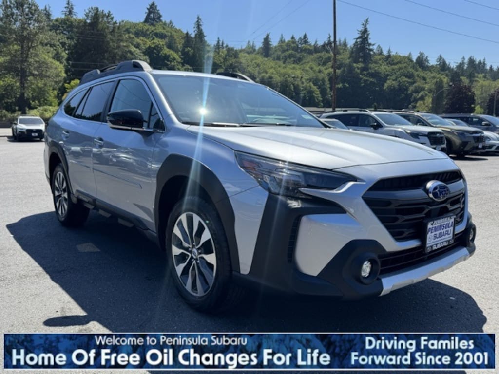 Silver Metallic 2025 Subaru Outback Limited AWD CVT Lineartronic 2.5L 4-Cylinder DOHC 16V 12 Speakers, 4-Wheel Disc Brakes, ABS brakes, Air Conditioning, Alloy wheels, AM/FM radio: SiriusXM with 360L, Auto High-beam Headlights, Auto-dimming Rear-View mirror, Automatic temperature control, Brake assist, Bumpers: body-color, Compass, Door Projector Light, Driver door bin, Driver vanity mirror, Dual front impact airbags, Dual front side impact airbags, Electronic Stability Control, Emergency communication system: STARLINK Safety Plus (3-year free trial), Exterior Parking Camera Rear, Four wheel independent suspension, Front anti-roll bar, Front Bucket Seats, Front Center Armrest w/Storage, Front dual zone A/C, Front fog lights, Front reading lights, Fully automatic headlights, Garage door transmitter: HomeLink, harman/kardon® Speakers, Heated door mirrors, Heated Front Bucket Seats, Heated front seats, Heated rear seats, Heated steering wheel, HVAC memory, Ice Silver Metallic Body Side Molding, Illuminated entry, Knee airbag, Leather Shift Knob, Leather steering wheel, LED Upgrade, Low tire pressure warning, Memory seat, Navigation system: TomTom Navigation w/what3words, Occupant sensing airbag, Outside temperature display, Overhead airbag, Overhead console, Panic alarm, Passenger door bin, Passenger vanity mirror, Perforated Leather-Trimmed Upholstery, Power door mirrors, Power driver seat, Power Liftgate, Power moonroof, Power passenger seat, Power steering, Power windows, Radio: Subaru STARLINK 11.6" Multimedia Nav System, Rear anti-roll bar, Rear seat center armrest, Rear window defroster, Rear window wiper, Remote keyless entry, Roof rack, Security system, Speed control, Speed-sensing steering, Splash Guards, Split folding rear seat, Spoiler, Steering wheel mounted audio controls, Tachometer, Telescoping steering wheel, Tilt steering wheel, Traction control, Trip computer, Turn signal indicator mirrors, Variably intermittent wipers, Wheels: 18" x 7J Black Aluminum-Alloy.