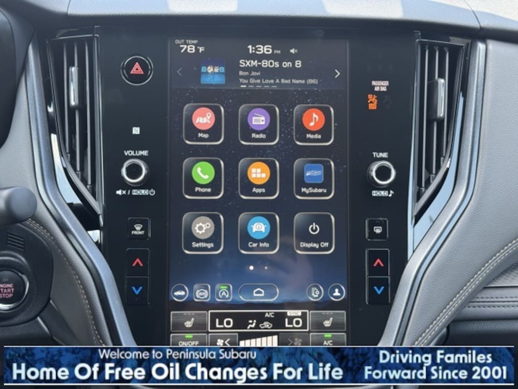 Black / Silver 2025 Subaru Outback Wilderness AWD CVT Lineartronic 2.4L DOHC 12 Speakers, 4-Wheel Disc Brakes, ABS brakes, Air Conditioning, Alloy wheels, AM/FM radio: SiriusXM with 360L, Apple CarPlay & Android Auto, Auto High-beam Headlights, Auto-Dimming Exterior Mirror w/Approach Light, Auto-dimming Rear-View mirror, Automatic temperature control, Brake assist, Cargo Sidewall Protector, Compass, Crystal Black Silica Body Side Molding, Door Projector Light, Driver door bin, Driver vanity mirror, Dual front impact airbags, Dual front side impact airbags, Electronic Stability Control, Emergency communication system: MySubaru Safety (3-year free trial), Exterior Parking Camera Rear, Four wheel independent suspension, Front anti-roll bar, Front Bucket Seats, Front Center Armrest w/Storage, Front dual zone A/C, Front fog lights, Front reading lights, Fully automatic headlights, Garage door transmitter: HomeLink, harman/kardon® Speakers, Heated door mirrors, Heated Front Bucket Seats, Heated front seats, Heated rear seats, Heated steering wheel, Illuminated entry, Knee airbag, Leather steering wheel, LED Upgrade, Low tire pressure warning, Occupant sensing airbag, Outside temperature display, Overhead airbag, Overhead console, Panic alarm, Passenger door bin, Passenger vanity mirror, Power door mirrors, Power driver seat, Power Liftgate, Power passenger seat, Power steering, Power windows, Radio: Subaru 11.6" Multimedia Plus System, Rear anti-roll bar, Rear seat center armrest, Rear window defroster, Rear window wiper, Remote keyless entry, Roof rack, Security system, Speed control, Speed-sensing steering, Splash Guards, Split folding rear seat, Spoiler, StarTex-Trimmed Upholstery, Steering wheel mounted audio controls, Tachometer, Telescoping steering wheel, Tilt steering wheel, Traction control, Trip computer, Turn signal indicator mirrors, Variably intermittent wipers, Wheels: 17" x 7J Matte Black Aluminum-Alloy.