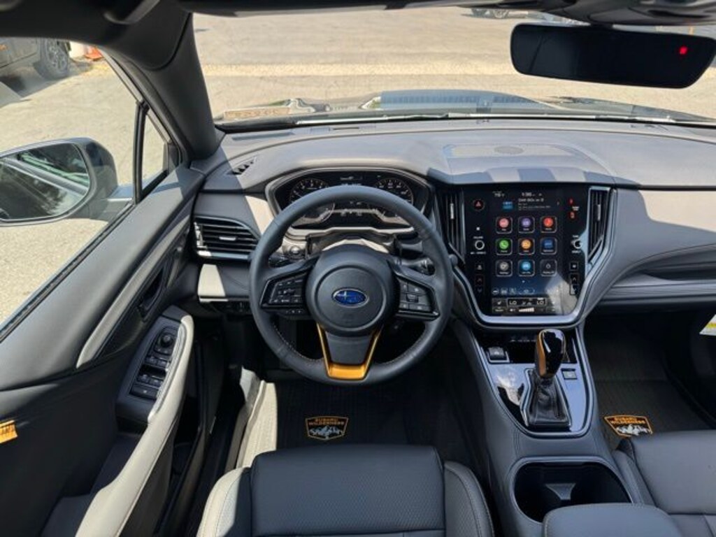 Crystal Black Silica 2025 Subaru Outback Wilderness AWD CVT Lineartronic 2.4L DOHC 12 Speakers, 4-Wheel Disc Brakes, ABS brakes, Air Conditioning, Alloy wheels, AM/FM radio: SiriusXM with 360L, Apple CarPlay & Android Auto, Auto High-beam Headlights, Auto-Dimming Exterior Mirror w/Approach Light, Auto-dimming Rear-View mirror, Automatic temperature control, Brake assist, Cargo Sidewall Protector, Compass, Crystal Black Silica Body Side Molding, Door Projector Light, Driver door bin, Driver vanity mirror, Dual front impact airbags, Dual front side impact airbags, Electronic Stability Control, Emergency communication system: MySubaru Safety (3-year free trial), Exterior Parking Camera Rear, Four wheel independent suspension, Front anti-roll bar, Front Bucket Seats, Front Center Armrest w/Storage, Front dual zone A/C, Front fog lights, Front reading lights, Fully automatic headlights, Garage door transmitter: HomeLink, harman/kardon® Speakers, Heated door mirrors, Heated Front Bucket Seats, Heated front seats, Heated rear seats, Heated steering wheel, Illuminated entry, Knee airbag, Leather steering wheel, LED Upgrade, Low tire pressure warning, Occupant sensing airbag, Outside temperature display, Overhead airbag, Overhead console, Panic alarm, Passenger door bin, Passenger vanity mirror, Power door mirrors, Power driver seat, Power Liftgate, Power Moonroof, Power Moonroof & Navigation & RAB, Power passenger seat, Power steering, Power windows, Radio: Subaru 11.6" Multimedia Plus System, Radio: Subaru 11.6" Multimedia System w/Navigation, Rear anti-roll bar, Rear seat center armrest, Rear window defroster, Rear window wiper, Remote keyless entry, Reverse Automatic Braking (RAB) System, Roof rack, Security system, Speed control, Speed-sensing steering, Splash Guards, Split folding rear seat, Spoiler, StarTex-Trimmed Upholstery, Steering wheel mounted audio controls, Tachometer, Telescoping steering wheel, Tilt steering wheel, Traction control, Trip computer, Turn signal indicator mirrors, Variably intermittent wipers, Wheels: 17" x 7J Matte Black Aluminum-Alloy.