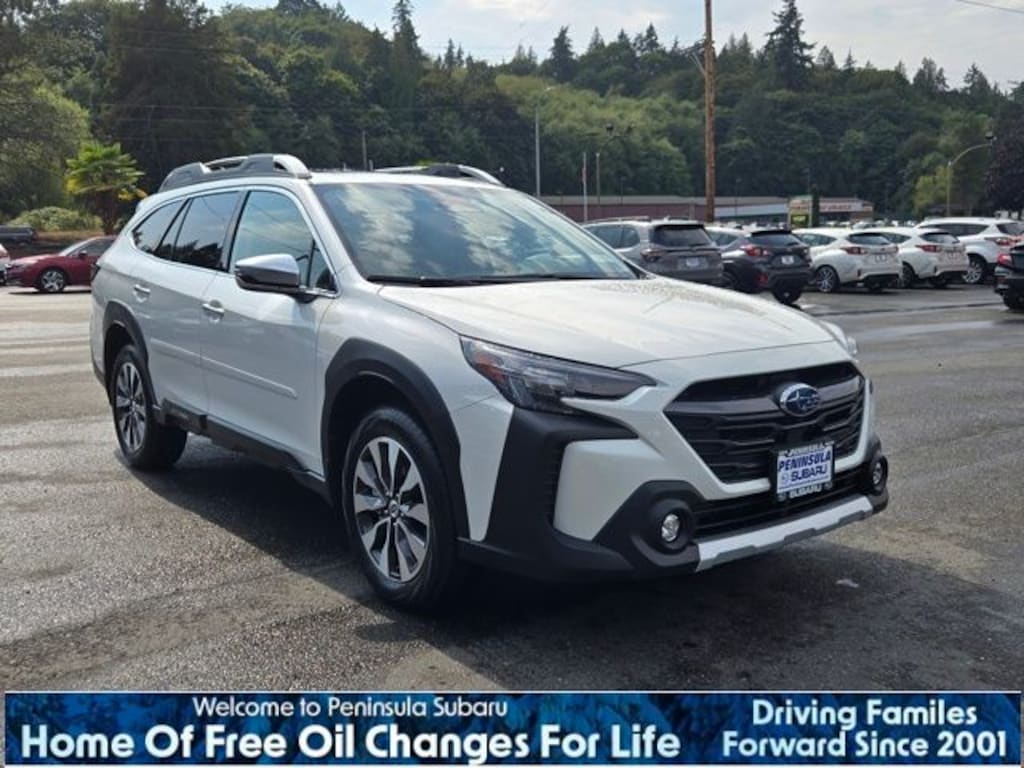 White Pearl 2025 Subaru Outback Touring XT AWD CVT Lineartronic 2.4L DOHC 12 Speakers, 4-Wheel Disc Brakes, ABS brakes, Air Conditioning, Alloy wheels, AM/FM radio: SiriusXM with 360L, Apple CarPlay & Android Auto, Auto High-beam Headlights, Auto-Dimming Exterior Mirror w/Approach Light, Auto-dimming Rear-View mirror, Automatic temperature control, Brake assist, Bumpers: body-color, Compass, Crystal White Pearl Body Side Molding, Door Projector Light, Driver door bin, Driver vanity mirror, Dual front impact airbags, Dual front side impact airbags, Electronic Stability Control, Emergency communication system: MySubaru Safety (3-year free trial), Exterior Parking Camera Rear, Four wheel independent suspension, Front anti-roll bar, Front Bucket Seats, Front Center Armrest w/Storage, Front dual zone A/C, Front fog lights, Front reading lights, Fully automatic headlights, Garage door transmitter: HomeLink, harman/kardon® Speakers, Heated & Ventilated Front Bucket Seats, Heated door mirrors, Heated front seats, Heated rear seats, Heated steering wheel, HVAC memory, Illuminated entry, Knee airbag, Leather Shift Knob, Leather steering wheel, LED Upgrade, Low tire pressure warning, Memory seat, Navigation system: TomTom Navigation w/what3words, Occupant sensing airbag, Outside temperature display, Overhead airbag, Overhead console, Panic alarm, Passenger door bin, Passenger vanity mirror, Perforated Nappa Leather-Trimmed Upholstery, Power door mirrors, Power driver seat, Power Liftgate, Power moonroof, Power passenger seat, Power steering, Power windows, Radio: Subaru 11.6" Multimedia System w/Navigation, Rear anti-roll bar, Rear seat center armrest, Rear window defroster, Rear window wiper, Remote CD player, Remote keyless entry, Roof rack, Security system, Speed control, Speed-sensing steering, Splash Guards, Split folding rear seat, Spoiler, Steering wheel mounted audio controls, Tachometer, Telescoping steering wheel, Tilt steering wheel, Traction control, Trip computer, Turn signal indicator mirrors, Variably intermittent wipers, Ventilated front seats, Wheels: 18" x 7J Black Aluminum-Alloy.