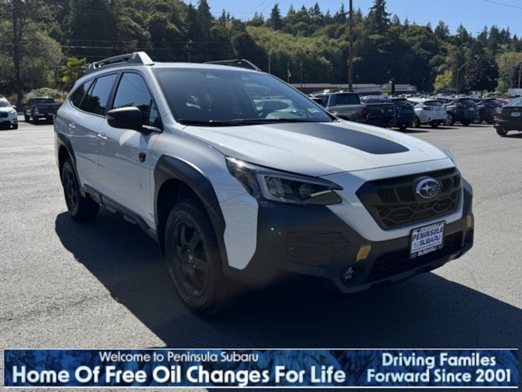 White Pearl 2025 Subaru Outback Wilderness AWD CVT Lineartronic 2.4L DOHC 12 Speakers, 4-Wheel Disc Brakes, ABS brakes, Air Conditioning, Alloy wheels, AM/FM radio: SiriusXM with 360L, Apple CarPlay & Android Auto, Auto High-beam Headlights, Auto-Dimming Exterior Mirror w/Approach Light, Auto-dimming Rear-View mirror, Automatic temperature control, Brake assist, Cargo Sidewall Protector, Compass, Crystal White Pearl Body Side Molding, Driver door bin, Driver vanity mirror, Dual front impact airbags, Dual front side impact airbags, Electronic Stability Control, Emergency communication system: MySubaru Safety (3-year free trial), Exterior Parking Camera Rear, Four wheel independent suspension, Front anti-roll bar, Front Bucket Seats, Front Center Armrest w/Storage, Front dual zone A/C, Front fog lights, Front reading lights, Fully automatic headlights, Garage door transmitter: HomeLink, harman/kardon® Speakers, Heated door mirrors, Heated Front Bucket Seats, Heated front seats, Heated rear seats, Heated steering wheel, Illuminated entry, Knee airbag, Leather steering wheel, Low tire pressure warning, Occupant sensing airbag, Outside temperature display, Overhead airbag, Overhead console, Panic alarm, Passenger door bin, Passenger vanity mirror, Power door mirrors, Power driver seat, Power Liftgate, Power passenger seat, Power steering, Power windows, Radio: Subaru 11.6" Multimedia Plus System, Rear anti-roll bar, Rear seat center armrest, Rear window defroster, Rear window wiper, Remote keyless entry, Roof rack, Security system, Speed control, Speed-sensing steering, Splash Guards, Split folding rear seat, Spoiler, StarTex-Trimmed Upholstery, Steering wheel mounted audio controls, Tachometer, Telescoping steering wheel, Tilt steering wheel, Traction control, Trip computer, Turn signal indicator mirrors, Variably intermittent wipers, Wheels: 17" x 7J Matte Black Aluminum-Alloy.