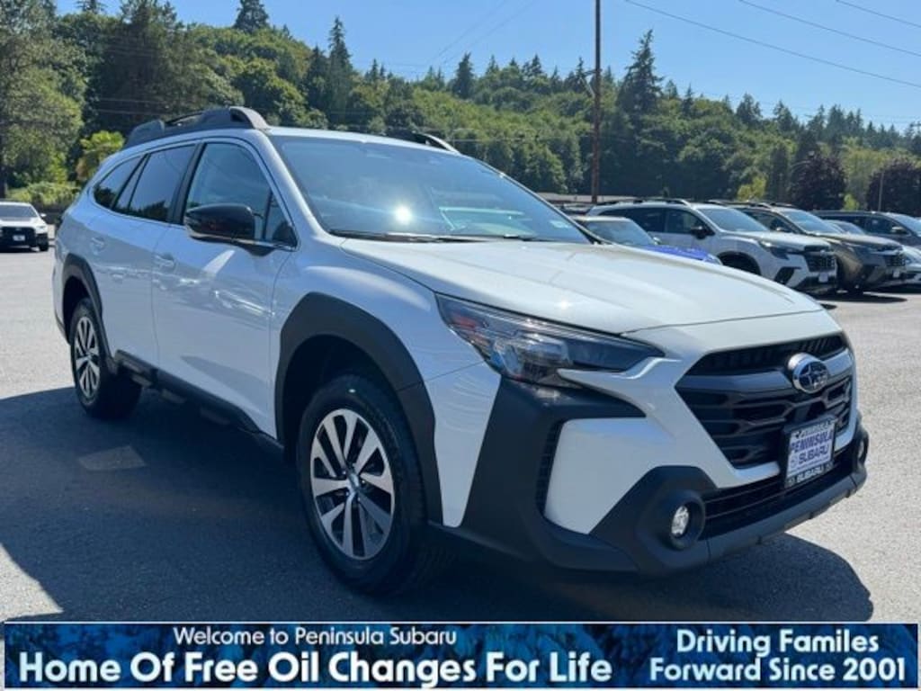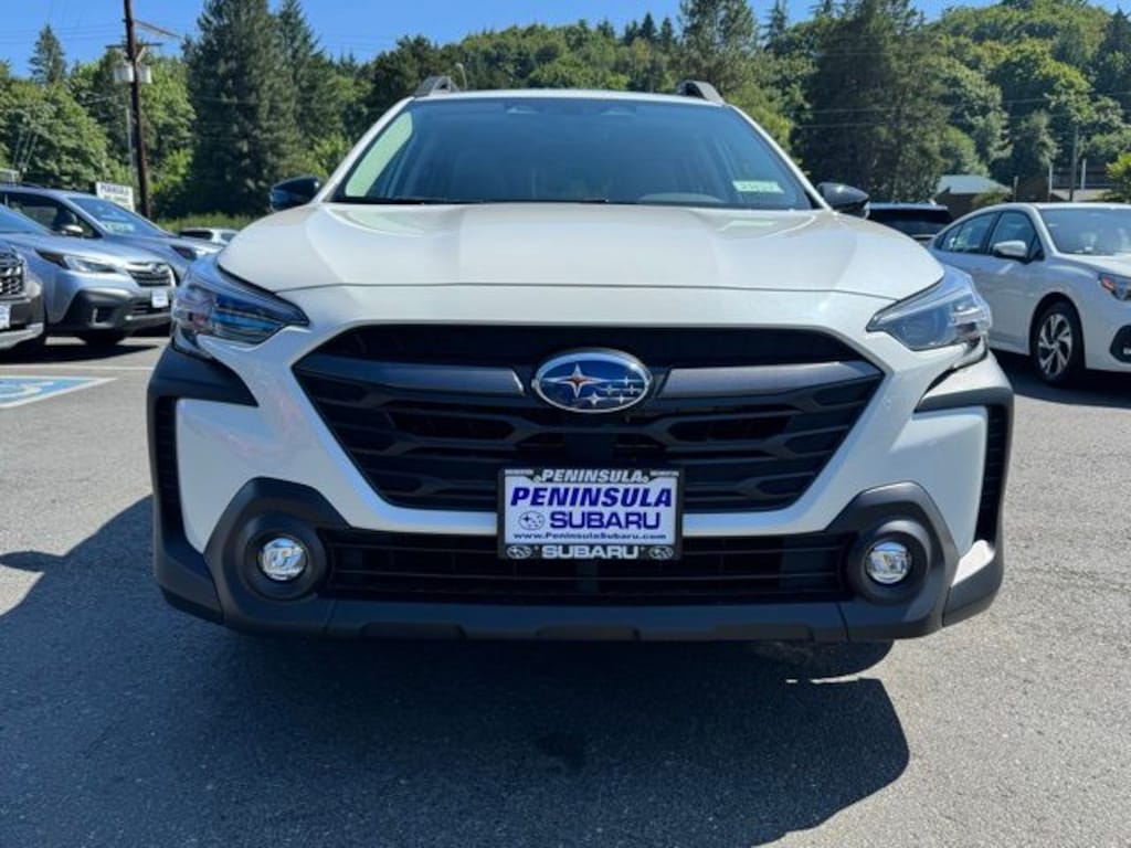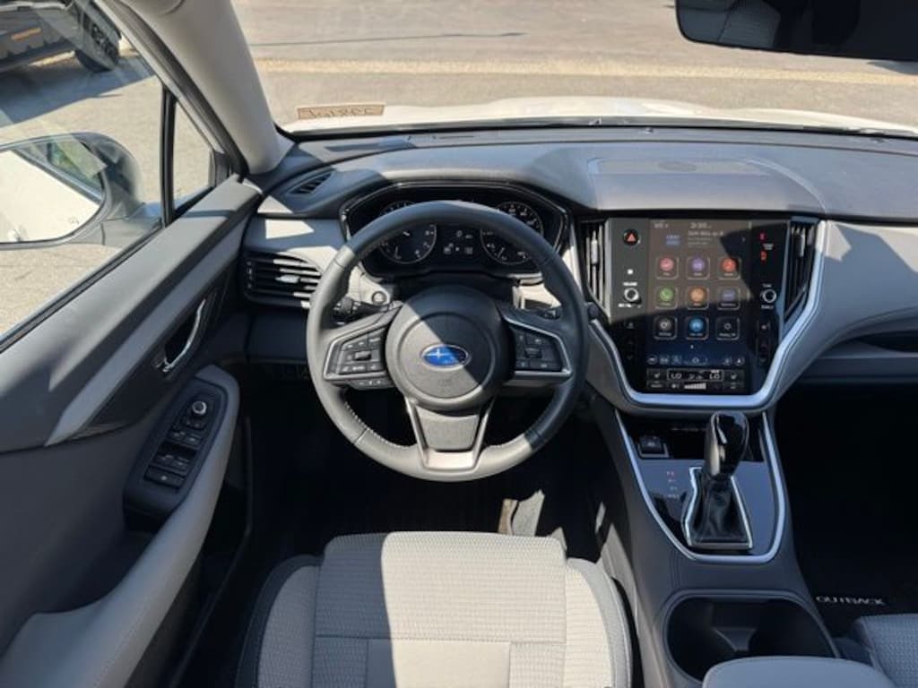 Crystal White Pearl 2025 Subaru Outback Premium AWD CVT Lineartronic 2.5L 4-Cylinder DOHC 16V 4-Wheel Disc Brakes, 6 Speakers, ABS brakes, Air Conditioning, Alloy wheels, AM/FM radio: SiriusXM with 360L, Apple CarPlay & Android Auto, Auto High-beam Headlights, Auto-Dimming Mirror w/Compass & HomeLink, Automatic temperature control, Blind Spot Detection (BSD), Brake assist, BSD & RCTA & Keyless Access & Push Button Start, Bumpers: body-color, Cloth Upholstery, Driver door bin, Driver vanity mirror, Dual front impact airbags, Dual front side impact airbags, Electronic Stability Control, Emergency communication system: MySubaru Safety (3-year free trial), Exterior Parking Camera Rear, Four wheel independent suspension, Front anti-roll bar, Front Bucket Seats, Front Center Armrest w/Storage, Front dual zone A/C, Front fog lights, Front reading lights, Fully automatic headlights, Hands-Free Power Rear Gate, Heated door mirrors, Heated Front Bucket Seats, Heated front seats, Illuminated entry, Keyless Access w/Push Button Start, Knee airbag, Leather Shift Knob, Leather steering wheel, LED Upgrade, Low tire pressure warning, Occupant sensing airbag, Outside temperature display, Overhead airbag, Overhead console, Panic alarm, Passenger door bin, Passenger vanity mirror, Power door mirrors, Power driver seat, Power Moonroof, Power steering, Power windows, Radio: Subaru 11.6" Multimedia Plus System, Radio: Subaru 11.6" Multimedia System w/Navigation, Rear anti-roll bar, Rear Cross Traffic Alert (RCTA), Rear seat center armrest, Rear window defroster, Rear window wiper, Remote keyless entry, Roof rack, Security system, Speed control, Speed-sensing steering, Split folding rear seat, Spoiler, Steering wheel mounted audio controls, Tachometer, Telescoping steering wheel, Tilt steering wheel, Traction control, Trip computer, Turn signal indicator mirrors, Variably intermittent wipers, Wheels: 17" x 7J Black Aluminum-Alloy.