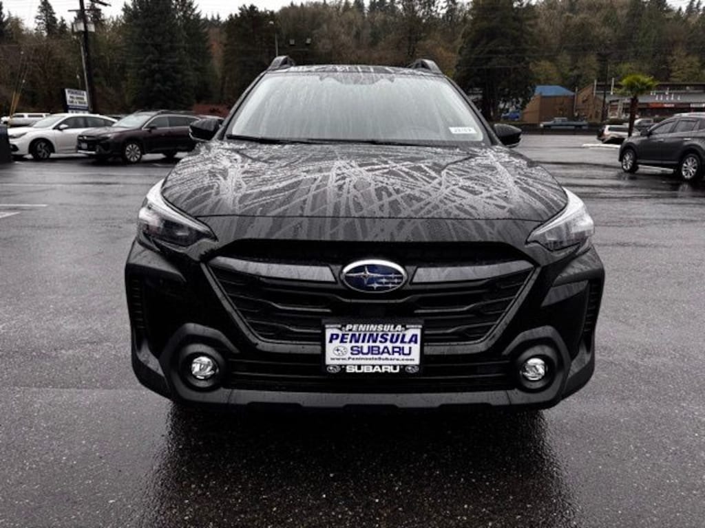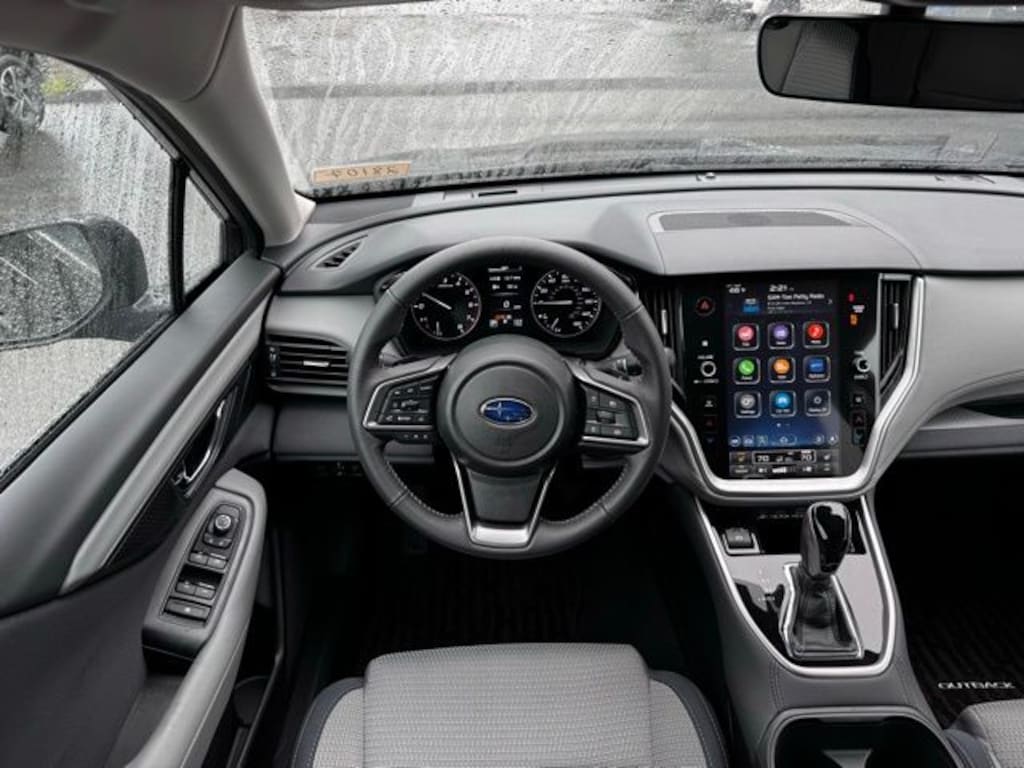 Black / Silver 2025 Subaru Outback Premium AWD CVT Lineartronic 2.5L 4-Cylinder DOHC 16V 4-Wheel Disc Brakes, 6 Speakers, ABS brakes, Air Conditioning, Alloy wheels, AM/FM radio: SiriusXM with 360L, Apple CarPlay & Android Auto, Auto High-beam Headlights, Auto-Dimming Exterior Mirror w/Approach Light, Auto-Dimming Mirror w/Compass & HomeLink, Automatic temperature control, Brake assist, Bumpers: body-color, Cloth Upholstery, Driver door bin, Driver vanity mirror, Dual front impact airbags, Dual front side impact airbags, Electronic Stability Control, Emergency communication system: MySubaru Safety (3-year free trial), Exterior Parking Camera Rear, Four wheel independent suspension, Front anti-roll bar, Front Bucket Seats, Front Center Armrest w/Storage, Front dual zone A/C, Front fog lights, Front reading lights, Fully automatic headlights, Heated door mirrors, Heated Front Bucket Seats, Heated front seats, Illuminated entry, Knee airbag, Leather Shift Knob, Leather steering wheel, LED Upgrade, Low tire pressure warning, Occupant sensing airbag, Outside temperature display, Overhead airbag, Overhead console, Panic alarm, Passenger door bin, Passenger vanity mirror, Power door mirrors, Power driver seat, Power steering, Power windows, Radio: Subaru 11.6" Multimedia Plus System, Rear anti-roll bar, Rear Bumper Cover, Rear seat center armrest, Rear window defroster, Rear window wiper, Remote keyless entry, Roof rack, Security system, Speed control, Speed-sensing steering, Split folding rear seat, Spoiler, Steering wheel mounted audio controls, Tachometer, Telescoping steering wheel, Tilt steering wheel, Traction control, Trip computer, Turn signal indicator mirrors, Variably intermittent wipers, Wheels: 17" x 7J Black Aluminum-Alloy.