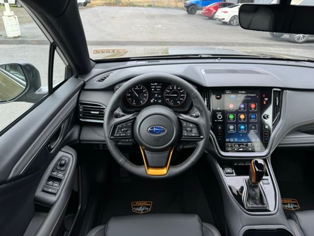 Autumn 2025 Subaru Outback Wilderness AWD CVT Lineartronic 2.4L DOHC 12 Speakers, 4-Wheel Disc Brakes, ABS brakes, Air Conditioning, Alloy wheels, AM/FM radio: SiriusXM with 360L, Apple CarPlay & Android Auto, Auto High-beam Headlights, Auto-Dimming Exterior Mirror w/Approach Light, Auto-dimming Rear-View mirror, Automatic temperature control, Brake assist, Cargo Sidewall Protector, Compass, Door Projector Light, Driver door bin, Driver vanity mirror, Dual front impact airbags, Dual front side impact airbags, Electronic Stability Control, Emergency communication system: MySubaru Safety (3-year free trial), Exterior Parking Camera Rear, Four wheel independent suspension, Front anti-roll bar, Front Bucket Seats, Front Center Armrest w/Storage, Front dual zone A/C, Front fog lights, Front reading lights, Fully automatic headlights, Garage door transmitter: HomeLink, harman/kardon® Speakers, Heated door mirrors, Heated Front Bucket Seats, Heated front seats, Heated rear seats, Heated steering wheel, Illuminated entry, Knee airbag, Leather steering wheel, LED Upgrade, Low tire pressure warning, Occupant sensing airbag, Outside temperature display, Overhead airbag, Overhead console, Panic alarm, Passenger door bin, Passenger vanity mirror, Power door mirrors, Power driver seat, Power Liftgate, Power passenger seat, Power steering, Power windows, Radio: Subaru 11.6" Multimedia Plus System, Rear anti-roll bar, Rear seat center armrest, Rear window defroster, Rear window wiper, Remote keyless entry, Roof rack, Security system, Speed control, Speed-sensing steering, Splash Guards, Split folding rear seat, Spoiler, StarTex-Trimmed Upholstery, Steering wheel mounted audio controls, Tachometer, Telescoping steering wheel, Tilt steering wheel, Traction control, Trip computer, Turn signal indicator mirrors, Variably intermittent wipers, Wheels: 17" x 7J Matte Black Aluminum-Alloy.