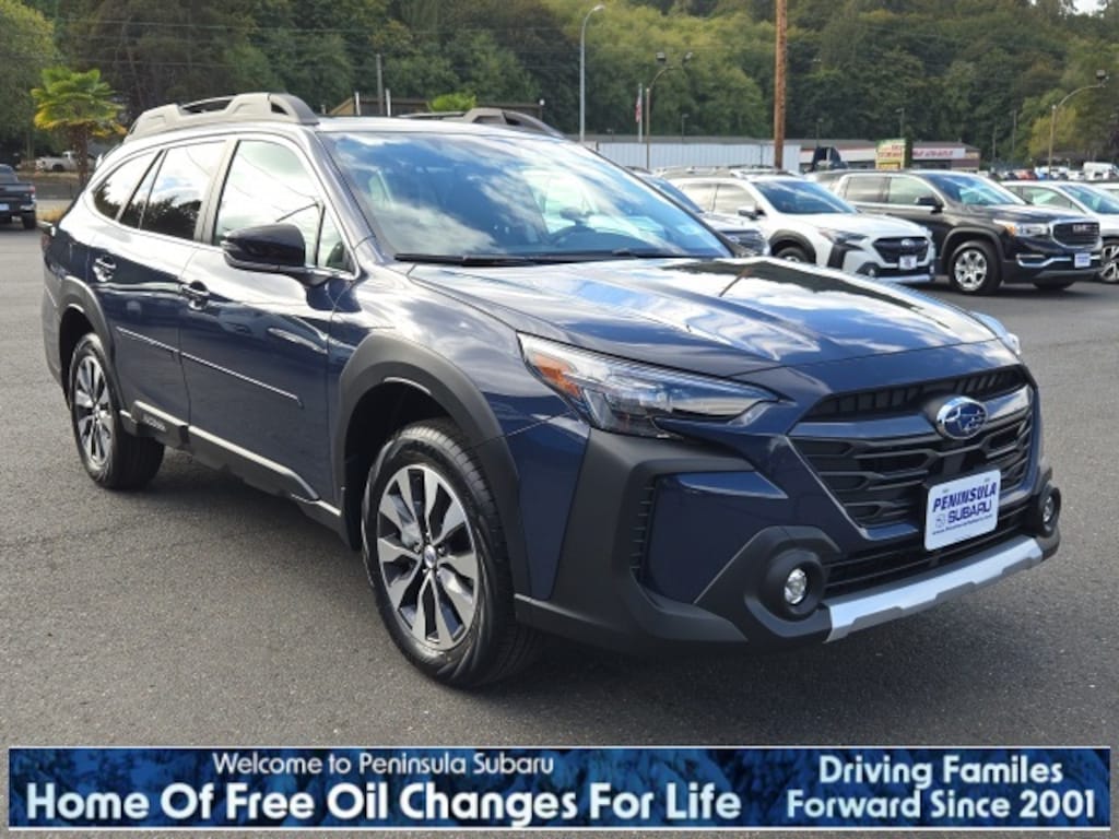 Blue 2025 Subaru Outback Limited AWD CVT Lineartronic 2.5L 4-Cylinder DOHC 16V 12 Speakers, 4-Wheel Disc Brakes, ABS brakes, Air Conditioning, Alloy wheels, AM/FM radio: SiriusXM with 360L, Apple CarPlay & Android Auto, Auto High-beam Headlights, Auto-Dimming Exterior Mirror w/Approach Light, Auto-dimming Rear-View mirror, Automatic temperature control, Brake assist, Bumpers: body-color, Compass, Cosmic Blue Pearl Body Side Molding, Driver door bin, Driver vanity mirror, Dual front impact airbags, Dual front side impact airbags, Electronic Stability Control, Emergency communication system: MySubaru Safety (3-year free trial), Exterior Parking Camera Rear, Four wheel independent suspension, Front anti-roll bar, Front Bucket Seats, Front Center Armrest w/Storage, Front dual zone A/C, Front fog lights, Front reading lights, Fully automatic headlights, Garage door transmitter: HomeLink, harman/kardon® Speakers, Heated door mirrors, Heated Front Bucket Seats, Heated front seats, Heated rear seats, Heated steering wheel, HVAC memory, Illuminated entry, Knee airbag, Leather Shift Knob, Leather steering wheel, Low tire pressure warning, Memory seat, Navigation system: TomTom Navigation w/what3words, Occupant sensing airbag, Outside temperature display, Overhead airbag, Overhead console, Panic alarm, Passenger door bin, Passenger vanity mirror, Perforated Leather-Trimmed Upholstery, Power door mirrors, Power driver seat, Power Liftgate, Power moonroof, Power passenger seat, Power steering, Power windows, Radio: Subaru 11.6" Multimedia System w/Navigation, Rear anti-roll bar, Rear seat center armrest, Rear window defroster, Rear window wiper, Remote keyless entry, Roof rack, Security system, Speed control, Speed-sensing steering, Splash Guards, Split folding rear seat, Spoiler, Steering wheel mounted audio controls, Tachometer, Telescoping steering wheel, Tilt steering wheel, Traction control, Trip computer, Turn signal indicator mirrors, Variably intermittent wipers, Wheels: 18" x 7J Black Aluminum-Alloy.