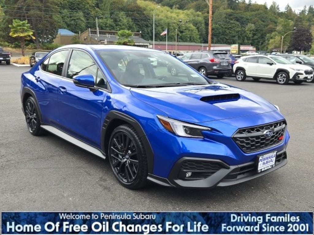 WR Blue Pearl 2025 Subaru WRX Limited AWD 6-Speed Manual 2.4L DOHC 11 Speakers, 4-Wheel Disc Brakes, ABS brakes, Air Conditioning, Alloy wheels, AM/FM radio: SiriusXM, Auto High-beam Headlights, Auto-Dimming Exterior Mirror w/Approach Light, Auto-Dimming Mirror w/Compass & HomeLink, Automatic temperature control, Brake assist, Bumpers: body-color, Cargo Tray, Driver door bin, Driver vanity mirror, Dual front impact airbags, Dual front side impact airbags, Electronic Stability Control, Emergency communication system, Exterior Parking Camera Rear, Four wheel independent suspension, Front anti-roll bar, Front Bucket Seats, Front Center Armrest, Front dual zone A/C, Front fog lights, Front reading lights, Fully automatic headlights, harman/kardon® Speakers, Heated door mirrors, Heated front seats, Illuminated entry, Knee airbag, Leather Shift Knob, Leather steering wheel, Low tire pressure warning, Navigation System, Occupant sensing airbag, Outside temperature display, Overhead airbag, Overhead console, Panic alarm, Passenger door bin, Passenger vanity mirror, Performance Design Heated Front Bucket Seats, Power door mirrors, Power driver seat, Power moonroof, Power steering, Power windows, Radio data system, Radio: Subaru 11.6" Multimedia System w/Navigation, Rear anti-roll bar, Rear seat center armrest, Rear window defroster, Remote keyless entry, Security system, Speed control, Speed-sensing steering, Split folding rear seat, Spoiler, Sport steering wheel, Steering wheel mounted audio controls, STI Performance Mufflers (WRX), Tachometer, Telescoping steering wheel, Tilt steering wheel, Traction control, Trip computer, Turn signal indicator mirrors, Ultrasuede & Leather-Trimmed Seats w/Red Bolsters, Variably intermittent wipers, Wheels: 18" x 8.5" Black Finish Alum Alloy.