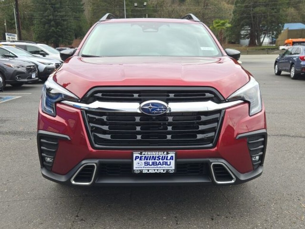 Crimson Red 2026 Subaru Ascent Touring AWD Lineartronic CVT 2.4L 4-Cylinder DOHC 16V 14 Speakers, 3rd row seats: bench, 4-Wheel Disc Brakes, ABS brakes, Air Conditioning, Alloy wheels, AM/FM radio: SiriusXM with 360L, Apple CarPlay & Android Auto, Auto High-beam Headlights, Auto-Dimming Exterior Mirror w/Approach Light, Auto-dimming Rear-View mirror, Automatic temperature control, Brake assist, Bumpers: body-color, Cargo Tray, Compass, Crimson Red Pearl Body Side Molding, Delay-off headlights, Driver door bin, Driver vanity mirror, Dual front impact airbags, Dual front side impact airbags, Electronic Stability Control, Emergency communication system: MySubaru Companion (5-years free), Exterior Parking Camera Rear, Four wheel independent suspension, Front anti-roll bar, Front Bucket Seats, Front Center Armrest, Front dual zone A/C, Front fog lights, Front reading lights, Fully automatic headlights, Garage door transmitter: HomeLink, harman/kardon® Speakers, Heated & Ventilated Front Bucket Seats, Heated door mirrors, Heated front seats, Heated rear seats, Heated steering wheel, HVAC memory, Illuminated entry, Knee airbag, Leather Shift Knob, Leather steering wheel, Low tire pressure warning, Memory seat, Navigation system: MySubaru Navigator (1-year trial), Occupant sensing airbag, Outside temperature display, Overhead airbag, Overhead console, Panic alarm, Passenger door bin, Passenger vanity mirror, Perforated Nappa Leather-Trimmed Upholstery, Power door mirrors, Power driver seat, Power Liftgate, Power moonroof, Power passenger seat, Power steering, Power windows, Radio data system, Radio: Subaru 11.6" Multimedia System w/Navigation, Rain sensing wipers, Rear air conditioning, Rear anti-roll bar, Rear reading lights, Rear window defroster, Rear window wiper, Reclining 3rd row seat, Remote keyless entry, Security system, Speed control, Speed-sensing steering, Splash Guards, Split folding rear seat, Spoiler, Steering wheel mounted audio controls, Tachometer, Telescoping steering wheel, Tilt steering wheel, Traction control, Trip computer, Turn signal indicator mirrors, Variably intermittent wipers, Ventilated front seats, Wheels: 20" x 7.5 J Dk Gray Alloy w/Machine Finish.