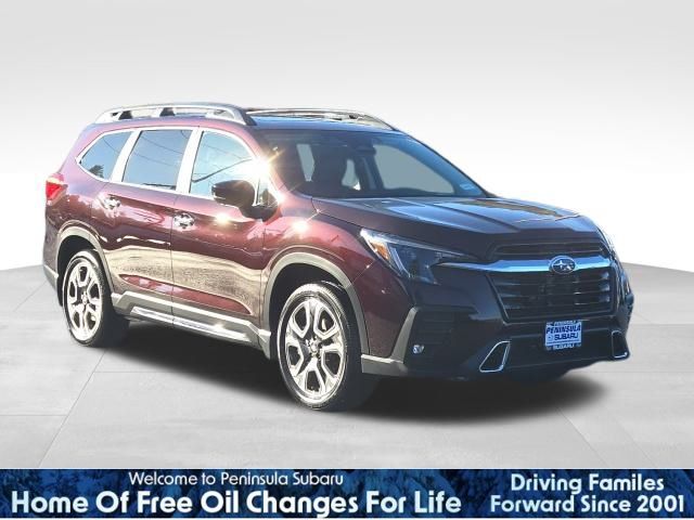 Mahogany Pearl 2026 Subaru Ascent Touring AWD Lineartronic CVT 2.4L 4-Cylinder DOHC 16V 14 Speakers, 3rd row seats: bench, 4-Wheel Disc Brakes, ABS brakes, Air Conditioning, Alloy wheels, AM/FM radio: SiriusXM with 360L, Apple CarPlay & Android Auto, Auto High-beam Headlights, Auto-Dimming Exterior Mirror with Approach Light, Auto-dimming Rear-View mirror, Automatic temperature control, Brake assist, Bumpers: body-color, Cargo Tray, Compass, Delay-off headlights, Driver door bin, Driver vanity mirror, Dual front impact airbags, Dual front side impact airbags, Electronic Stability Control, Emergency communication system: MySubaru Companion (5-years free), Exterior Parking Camera Rear, Four wheel independent suspension, Front anti-roll bar, Front Bucket Seats, Front Center Armrest, Front Door Projector Lights, Front dual zone A/C, Front fog lights, Front reading lights, Fully automatic headlights, Garage door transmitter: HomeLink, harman/kardon® Speakers, Heated and Ventilated Front Bucket Seats, Heated door mirrors, Heated front seats, Heated rear seats, Heated steering wheel, HVAC memory, Illuminated entry, Knee airbag, Leather Shift Knob, Leather steering wheel, Low tire pressure warning, Memory seat, Navigation system: MySubaru Navigator (1-year trial), Occupant sensing airbag, Outside temperature display, Overhead airbag, Overhead console, Panic alarm, Passenger door bin, Passenger vanity mirror, Perforated Nappa Leather-Trimmed Upholstery, Power door mirrors, Power driver seat, Power Liftgate, Power moonroof, Power passenger seat, Power steering, Power windows, Radio data system, Radio: Subaru 11.6" Multimedia System with Navigation, Rain sensing wipers, Rear air conditioning, Rear anti-roll bar, Rear reading lights, Rear window defroster, Rear window wiper, Reclining 3rd row seat, Remote keyless entry, Security system, Speed control, Speed-sensing steering, Splash Guards, Split folding rear seat, Spoiler, Standard Model, Steering wheel mounted audio controls, Tachometer, Telescoping steering wheel, Tilt steering wheel, Traction control, Trip computer, Turn signal indicator mirrors, Variably intermittent wipers, Ventilated front seats, Wheels: 20" x 7.5 J Dark Gray Alloy with Machine Finish.