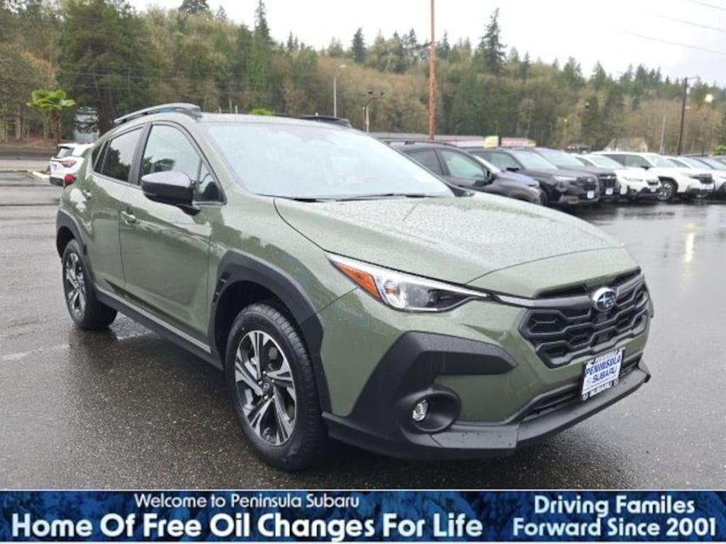 Alpine 2026 Subaru Crosstrek Premium AWD Lineartronic CVT 2.5L 4-Cylinder DOHC 16V 4-Wheel Disc Brakes, 6 Speakers, ABS brakes, Air Conditioning, Alloy wheels, AM/FM radio: SiriusXM, Anti-whiplash front head restraints, Auto High-beam Headlights, Auto-Dimming Exterior Mirror with Approach Light, Auto-Dimming Mirror with Compass and HomeLink, Automatic temperature control, Brake assist, Bumpers: body-color, Cloth Upholstery, Crosstrek Mirror Package, Driver door bin, Driver vanity mirror, Dual front impact airbags, Dual front side impact airbags, Electronic Stability Control, Emergency communication system: MySubaru Companion (5-years free), Exterior Parking Camera Rear, Four wheel independent suspension, Front anti-roll bar, Front Bucket Seats, Front Center Armrest, Front dual zone A/C, Front fog lights, Front reading lights, Fully automatic headlights, Illuminated entry, Knee airbag, Low tire pressure warning, Occupant sensing airbag, Outside temperature display, Overhead airbag, Overhead console, Panic alarm, Passenger door bin, Passenger vanity mirror, Power door mirrors, Power steering, Power windows, Radio data system, Radio: Subaru 11.6" Multimedia Plus System, Rear anti-roll bar, Rear seat center armrest, Rear side impact airbag, Rear window defroster, Rear window wiper, Remote keyless entry, Security system, Speed control, Speed-sensing steering, Split folding rear seat, Spoiler, Steering wheel mounted audio controls, Tachometer, Telescoping steering wheel, Tilt steering wheel, Traction control, Trip computer, Turn signal indicator mirrors, Variably intermittent wipers, Wheels: 17" x 7.0" J Machine Finish Aluminum-Alloy.