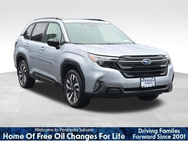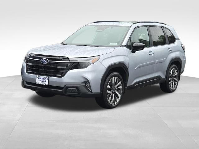 Silver Metallic 2026 Subaru Forester Touring AWD Lineartronic CVT 2.5L 4-Cylinder DOHC 16V 11 Speakers, 4-Wheel Disc Brakes, ABS brakes, Air Conditioning, Alloy wheels, AM/FM radio: SiriusXM with 360L, Anti-whiplash front head restraints, Auto High-beam Headlights, Auto-Dimming Exterior Mirror with Approach Light, Automatic temperature control, Body Side Molding - Ice Silver Metallic, Brake assist, Bumpers: body-color, Cargo Tray, Door Projector Lights, Driver door bin, Driver vanity mirror, Dual front impact airbags, Dual front side impact airbags, Electronic Stability Control, Emergency communication system: MySubaru Companion (5-years free), Exterior Parking Camera Rear, Four wheel independent suspension, Front anti-roll bar, Front Bucket Seats, Front Center Armrest, Front dual zone A/C, Front fog lights, Front reading lights, Fully automatic headlights, harman/kardon® Speakers, Heads-Up Display, Heated and Ventilated Front Bucket Seats, Heated door mirrors, Heated front seats, Heated rear seats, Heated steering wheel, HVAC memory, Illuminated entry, Knee airbag, Leather Shift Knob, Leather steering wheel, Low tire pressure warning, Memory seat, Navigation System, Occupant sensing airbag, Outside temperature display, Overhead airbag, Overhead console, Panic alarm, Passenger door bin, Passenger vanity mirror, Perforated Leather-Trimmed Upholstery, Power door mirrors, Power driver seat, Power Liftgate, Power moonroof: Panoramic, Power passenger seat, Power steering, Power windows, Radio data system, Radio: Subaru 11.6" Multimedia Navigation System, Rain sensing wipers, Rear anti-roll bar, Rear seat center armrest, Rear window defroster, Rear window wiper, Remote keyless entry, Security system, Speed control, Speed-sensing steering, Splash Guards, Split folding rear seat, Spoiler, Steering wheel mounted audio controls, Tachometer, Telescoping steering wheel, Tilt steering wheel, Traction control, Trip computer, Turn signal indicator mirrors, Variably intermittent wipers, Ventilated front seats, Wheels: 19" x 7.5 J Dark Gray Aluminum-Alloy.