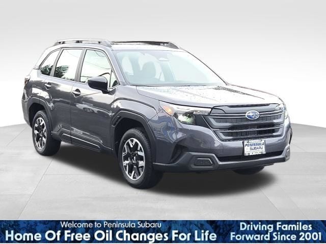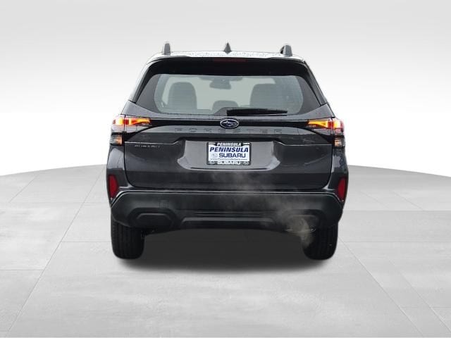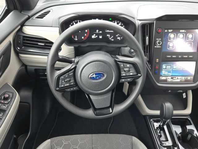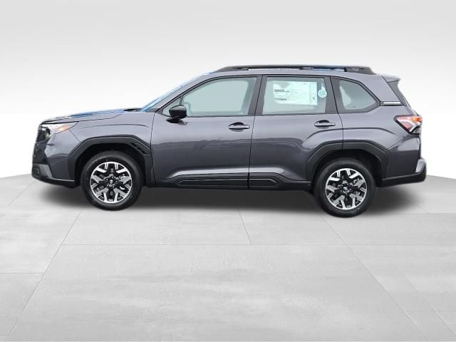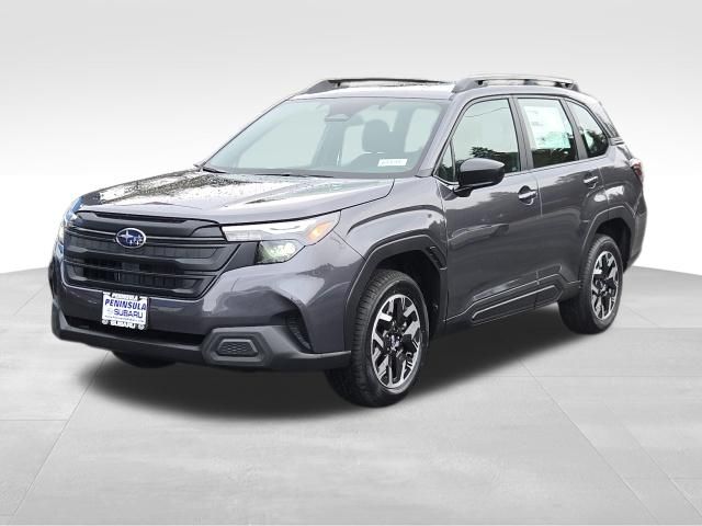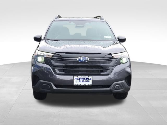 Gray 2026 Subaru Forester AWD Lineartronic CVT 2.5L 4-Cylinder DOHC 16V 4 Speakers, 4-Wheel Disc Brakes, ABS brakes, Air Conditioning, Alloy wheels, AM/FM radio: SiriusXM, Anti-whiplash front head restraints, Auto High-beam Headlights, Automatic temperature control, Brake assist, Bumpers: body-color, Driver door bin, Driver vanity mirror, Dual front impact airbags, Dual front side impact airbags, Electronic Stability Control, Exterior Parking Camera Rear, Four wheel independent suspension, Front anti-roll bar, Front Bucket Seats, Front Center Armrest, Front dual zone A/C, Front reading lights, Fully automatic headlights, Hexagonal Patterned Cloth Upholstery, Illuminated entry, Knee airbag, Low tire pressure warning, Occupant sensing airbag, Outside temperature display, Overhead airbag, Overhead console, Panic alarm, Passenger door bin, Passenger vanity mirror, Power door mirrors, Power steering, Power windows, Radio data system, Radio: Subaru Dual 7.0" Multimedia System, Rear anti-roll bar, Rear window defroster, Rear window wiper, Remote keyless entry, Security system, Speed control, Speed-sensing steering, Split folding rear seat, Spoiler, Steering wheel mounted audio controls, Tachometer, Telescoping steering wheel, Tilt steering wheel, Traction control, Trip computer, Variably intermittent wipers, Wheels: 17" x 7.0 J Dark Metallic Aluminum-Alloy.