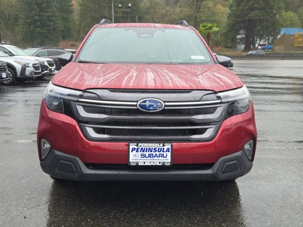 Crimson Red 2026 Subaru Forester Limited AWD Lineartronic CVT 2.5L 4-Cylinder DOHC 16V 4-Wheel Disc Brakes, 6 Speakers, ABS brakes, Air Conditioning, Alloy wheels, AM/FM radio: SiriusXM with 360L, Anti-whiplash front head restraints, Auto High-beam Headlights, Auto-Dimming Mirror w/Compass & HomeLink, Automatic temperature control, Body Side Molding - Crimson Red Pearl, Brake assist, Bumpers: body-color, Cargo Tray, Driver door bin, Driver vanity mirror, Dual front impact airbags, Dual front side impact airbags, Electronic Stability Control, Emergency communication system: MySubaru Companion (5-years free), Exterior Parking Camera Rear, Four wheel independent suspension, Front anti-roll bar, Front Bucket Seats, Front Center Armrest, Front dual zone A/C, Front fog lights, Front reading lights, Fully automatic headlights, Heated door mirrors, Heated Front Bucket Seats, Heated front seats, Heated steering wheel, Illuminated entry, Knee airbag, Leather steering wheel, LED Upgrade, Low tire pressure warning, Occupant sensing airbag, Outside temperature display, Overhead airbag, Overhead console, Panic alarm, Passenger door bin, Passenger vanity mirror, Perforated Leather-Trimmed Upholstery, Power door mirrors, Power driver seat, Power Liftgate, Power moonroof: Panoramic, Power passenger seat, Power steering, Power windows, Radio data system, Radio: Subaru 11.6" Multimedia Plus System, Rain sensing wipers, Rear anti-roll bar, Rear seat center armrest, Rear window defroster, Rear window wiper, Remote keyless entry, Security system, Speed control, Speed-sensing steering, Splash Guards, Split folding rear seat, Spoiler, Steering wheel mounted audio controls, Tachometer, Telescoping steering wheel, Tilt steering wheel, Traction control, Trip computer, Turn signal indicator mirrors, Variably intermittent wipers, Wheels: 18" x 7.0 J Dark Metallic Aluminum-Alloy.