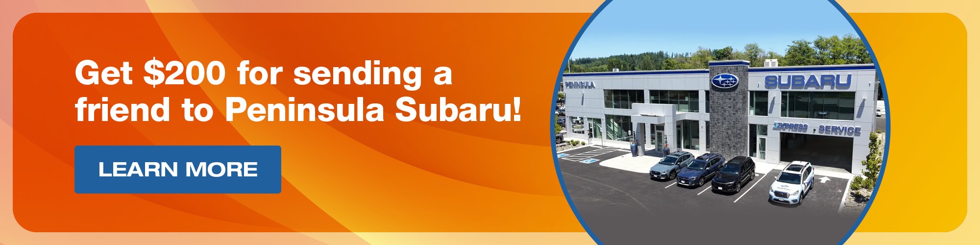 You choose a Subaru to appease your eco-conscience, protect your family, keep your wallet content, and indulge in promising features and cabin comforts; and you choose to work with us at Peninsula Subaru for our exceptional prices, satisfying selection and general painless car buying experience. In fact, you are so satisfied with your choice vehicle and dealership that you might even recommend us to a friend, family member or neighbor. As a thank you for introducing us to more friendly drivers, we want to give you $200! Through our referral program, we aren't the only ones benefiting from this new founded partnership but you come away with more money to apply to your next car, service, or whatever else your heart desires.