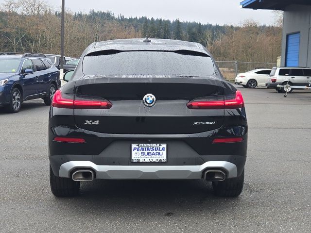 12 Speakers, 3.39 Axle Ratio, 4-Wheel Disc Brakes, ABS brakes, Air Conditioning, Alloy wheels, Aluminum Trim, AM/FM radio: SiriusXM with 360L, Anti-whiplash front head restraints, Apple CarPlay & Android Auto Compatibility, Auto High-beam Headlights, Auto-dimming door mirrors, Auto-dimming Rear-View mirror, Automatic temperature control, BMW Assist eCall, BMW TeleServices, Brake assist, Bumpers: body-color, Comfort Access Keyless Entry, Connected Package Pro, Delay-off headlights, Driver door bin, Driver vanity mirror, Dual front impact airbags, Dual front side impact airbags, Electronic Stability Control, Emergency communication system: BMW Assist eCall, Enhanced USB & Bluetooth w/Smartphone Integration, Exterior Parking Camera Rear, Four wheel independent suspension, Front anti-roll bar, Front Bucket Seats, Front Center Armrest, Front dual zone A/C, Front reading lights, Fully automatic headlights, Garage door transmitter, Genuine wood dashboard insert, Genuine wood door panel insert, Head-Up Display, Heated door mirrors, Heated Front Seats, Heated Steering Wheel, Hi-Fi Sound System, Illuminated entry, Knee airbag, Leather steering wheel, Live Cockpit Pro w/Navi, Low tire pressure warning, Lumbar Support, Memory seat, Navigation System, Occupant sensing airbag, Outside temperature display, Overhead airbag, Overhead console, Panic alarm, Passenger door bin, Passenger vanity mirror, Perforated SensaTec Upholstery, Power door mirrors, Power driver seat, Power Front Seats, Power Liftgate, Power moonroof: Panorama, Power passenger seat, Power steering, Power windows, Premium Package, Radio data system, Radio: AM/FM Audio System, Rain sensing wipers, Rear air conditioning, Rear anti-roll bar, Rear reading lights, Rear seat center armrest, Rear window defroster, Remote keyless entry, Security system, SiriusXM w/360L, Speed control, Speed-sensing steering, Speed-Sensitive Wipers, Split folding rear seat, Sport Seats, Sport steering wheel, Steering wheel mounted audio controls, Tachometer, Telescoping steering wheel, Tilt steering wheel, Traction control, Trip computer, Turn signal indicator mirrors, Variably intermittent wipers, Wheels: 19" x 7.5" Y-Spoke (Style 693), Wheels: 19" x 7.5" Y-Spoke Ferric Grey (Style 693), WiFi Hotspot. 2024 BMW X4 xDrive30i Black AWD 2.0L I4 TwinPower Turbo 8-Speed Automatic Sport