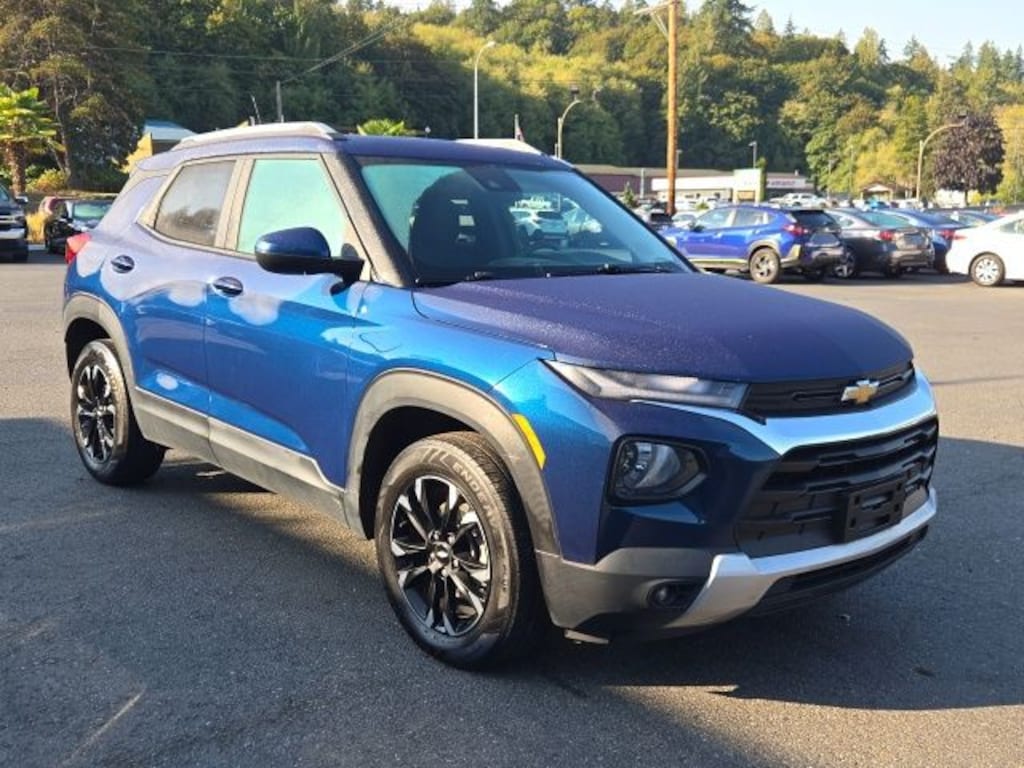 2-Way Power Driver Lumbar Seat Adjuster, 3.17 Axle Ratio, 4-Way Manual Front Passenger Seat Adjuster, 4-Wheel Disc Brakes, 6 Speakers, 6-Speaker Audio System Feature w/Amplifier, 8-Way Power Driver Seat Adjuster, ABS brakes, Air Conditioning, Alloy wheels, AM/FM radio, Apple CarPlay/Android Auto, Auto High-beam Headlights, Brake assist, Bumpers: body-color, Cloth Seat Trim, Compass, Delay-off headlights, Driver Confidence Package, Driver door bin, Driver vanity mirror, Dual front impact airbags, Dual front side impact airbags, Electronic Stability Control, Emergency communication system: OnStar and Chevrolet connected services capable, Exterior Parking Camera Rear, Flat-Folding Front Passenger Seatback, Front anti-roll bar, Front Bucket Seats, Front Center Armrest, Front fog lights, Front License Plate Bracket, Front reading lights, Front wheel independent suspension, Fully automatic headlights, Heated door mirrors, Heated Driver & Front Passenger Seats, Heated front seats, Illuminated entry, Knee airbag, Lane Change Alert w/Side Blind Zone Alert, Low tire pressure warning, Occupant sensing airbag, Overhead airbag, Overhead console, Panic alarm, Passenger door bin, Passenger vanity mirror, Power door mirrors, Power driver seat, Power steering, Power windows, Preferred Equipment Group 1LT, Radio data system, Radio: Chevrolet Infotainment 3 System, Rear Cross Traffic Alert, Rear Park Assist, Rear side impact airbag, Rear window defroster, Rear window wiper, Remote keyless entry, Ride & Handling Suspension, Roof rack: rails only, Security system, Speed control, Split folding rear seat, Spoiler, Steering wheel mounted audio controls, Tachometer, Telescoping steering wheel, Tilt steering wheel, Traction control, Trip computer, Variably intermittent wipers, Wheels: 17" High Gloss Black Machined Aluminum, Wireless Apple CarPlay/Android Auto. 2021 Chevrolet TrailBlazer LT Pacific Blue Metallic AWD 1.3L Ecotec Turbo DOHC SIDI w/VVT 9-Speed Automatic