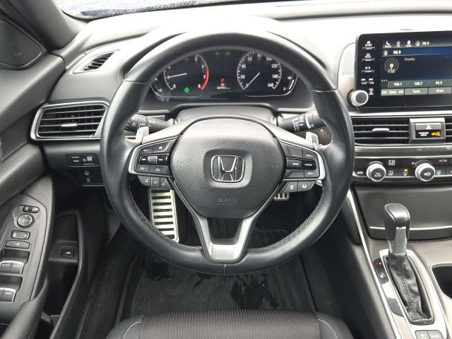 Cloth, 4-Wheel Disc Brakes, 8 Speakers, ABS brakes, Adaptive Cruise Control: Adaptive Cruise Control (ACC) with Low-Speed Follow, Air Conditioning, Alloy wheels, AM/FM radio, Apple CarPlay/Android Auto, Auto High-beam Headlights, Automatic temperature control, Brake assist, Bumpers: body-color, Cloth Seat Trim, Delay-off headlights, Driver door bin, Driver vanity mirror, Dual front impact airbags, Dual front side impact airbags, Electronic Stability Control, Emergency communication system: HondaLink, Exterior Parking Camera Rear, Forward collision: Collision Mitigation Braking System (CMBS) + FCW mitigation, Four wheel independent suspension, Front anti-roll bar, Front Bucket Seats, Front Center Armrest, Front dual zone A/C, Front fog lights, Front reading lights, Fully automatic headlights, Illuminated entry, Knee airbag, Lane Departure Warning System, Leather Shift Knob, Leather steering wheel, Low tire pressure warning, Occupant sensing airbag, Outside temperature display, Overhead airbag, Overhead console, Panic alarm, Passenger door bin, Passenger vanity mirror, Power door mirrors, Power driver seat, Power steering, Power windows, Radio data system, Radio: 180-Watt AM/FM Audio System, Rear anti-roll bar, Rear seat center armrest, Rear window defroster, Remote keyless entry, Security system, Speed control, Speed-sensing steering, Speed-Sensitive Wipers, Split folding rear seat, Spoiler, Steering wheel mounted audio controls, Tachometer, Telescoping steering wheel, Tilt steering wheel, Traction control, Trip computer, Variably intermittent wipers, Wheels: 19" Machine-Finished Alloy w/Black Inserts, Cloth. 2020 Honda Accord Sport FWD 1.5T I4 DOHC 16V Turbocharged VTEC CVT