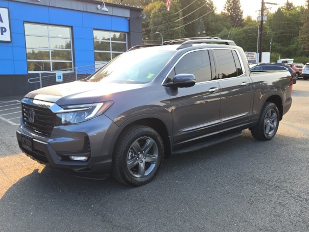 Leather, 4-Wheel Disc Brakes, 4.33 Axle Ratio, 8 Speakers, ABS brakes, Air Conditioning, Alloy wheels, AM/FM radio: SiriusXM, Apple CarPlay/Android Auto, Auto High-beam Headlights, Auto-dimming Rear-View mirror, Automatic temperature control, Blind Spot Information (BSI) System warning, Bluetooth® Hands-Free Link, Brake assist, Bumpers: body-color, Compass, Delay-off headlights, Driver door bin, Driver vanity mirror, Driver's Seat Mounted Armrest, Dual front impact airbags, Dual front side impact airbags, Electronic Stability Control, Exterior Parking Camera Rear, Four wheel independent suspension, Front anti-roll bar, Front Bucket Seats, Front dual zone A/C, Front fog lights, Front reading lights, Fully automatic headlights, Garage door transmitter: HomeLink, Heated door mirrors, Heated Front Bucket Seats, Heated front seats, Heated steering wheel, Honda Satellite-Linked Navigation System, Illuminated entry, Leather Seat Trim, Low tire pressure warning, Memory seat, Navigation system: Honda Satellite-Linked Navigation System, Occupant sensing airbag, Outside temperature display, Overhead airbag, Overhead console, Panic alarm, Passenger door bin, Passenger seat mounted armrest, Passenger vanity mirror, Power door mirrors, Power driver seat, Power moonroof, Power passenger seat, Power steering, Power windows, Radio data system, Radio: 540-Watt Premium Audio System w/8 Speakers, Rear air conditioning, Rear anti-roll bar, Rear reading lights, Rear seat center armrest, Rear step bumper, Rear window defroster, Remote keyless entry, Security system, SiriusXM, Speed control, Speed-sensing steering, Split folding rear seat, Steering wheel mounted audio controls, Tachometer, Telescoping steering wheel, Tilt steering wheel, Traction control, Trip computer, Turn signal indicator mirrors, Variably intermittent wipers, Wheels: 18" Exclusive Pewter Gray Alloy, Leather. 2023 Honda Ridgeline RTL-E Gray AWD 3.5L V6 SOHC i-VTEC 24V 9-Speed Automatic