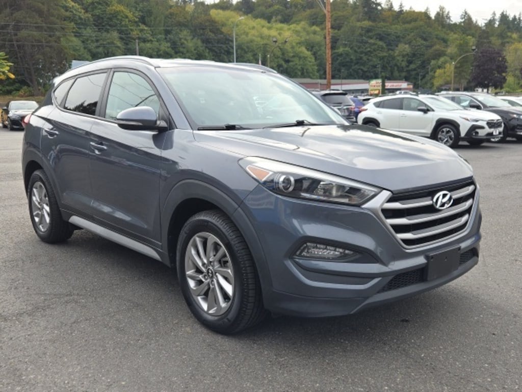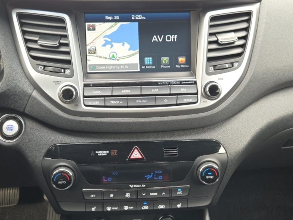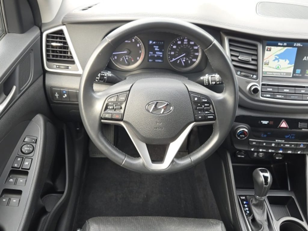 AWD, 17" x 7.0J Alloy Wheels, 4-Wheel Disc Brakes, 8 Speakers, ABS brakes, Air Conditioning, Alloy wheels, AM/FM radio: SiriusXM, Apple CarPlay & Android Auto, Auto-dimming Rear-View mirror, Automatic temperature control, Axle Ratio: 3.648, Brake assist, Bumpers: body-color, Cargo Net, Cargo Package, Cargo Tray, Compass, Delay-off headlights, Driver door bin, Driver vanity mirror, Dual front impact airbags, Dual front side impact airbags, Electronic Stability Control, Emergency communication system: Blue Link, Exterior Parking Camera Rear, First Aid Kit, Four wheel independent suspension, Front anti-roll bar, Front Bucket Seats, Front Center Armrest, Front dual zone A/C, Front fog lights, Front reading lights, Fully automatic headlights, Garage door transmitter: HomeLink, Heated door mirrors, Heated Front Bucket Seats, Heated front seats, Illuminated entry, Leather Seat Trim, Leather Shift Knob, Low tire pressure warning, Navigation System, Occupant sensing airbag, Option Group 01, Outside temperature display, Overhead airbag, Overhead console, Panic alarm, Passenger door bin, Passenger vanity mirror, Power door mirrors, Power driver seat, Power passenger seat, Power steering, Power windows, Radio: AM/FM/HD Radio/MP3/Navigation Audio System, Rear anti-roll bar, Rear seat center armrest, Rear window defroster, Rear window wiper, Remote keyless entry, Roof rack: rails only, Security system, Speed control, Speed-sensing steering, Split folding rear seat, Spoiler, Steering wheel mounted audio controls, Tachometer, Telescoping steering wheel, Tilt steering wheel, Traction control, Trip computer, Turn signal indicator mirrors, Variably intermittent wipers, AWD. 2018 Hyundai Tucson SEL Plus Coliseum Gray AWD 2.0L DOHC 6-Speed Automatic with Shiftronic